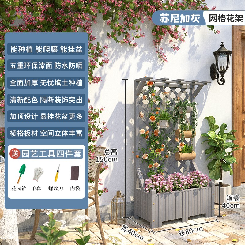 庭院围栏隔断爬藤花m架种植箱防腐木栅栏网格篱笆花盆户外花园围
