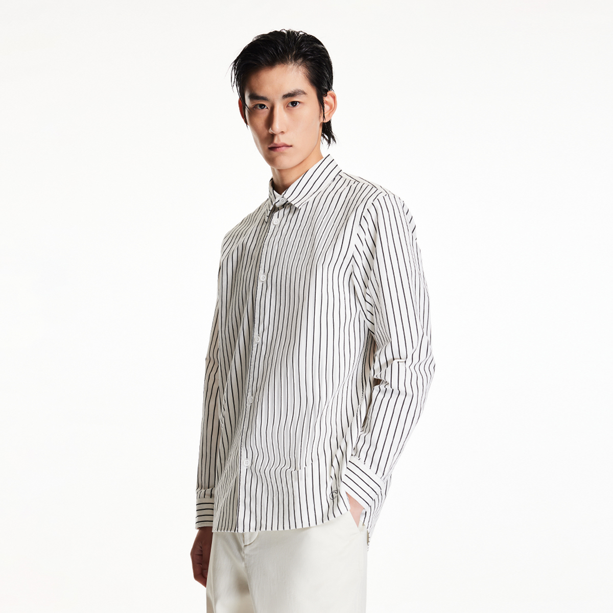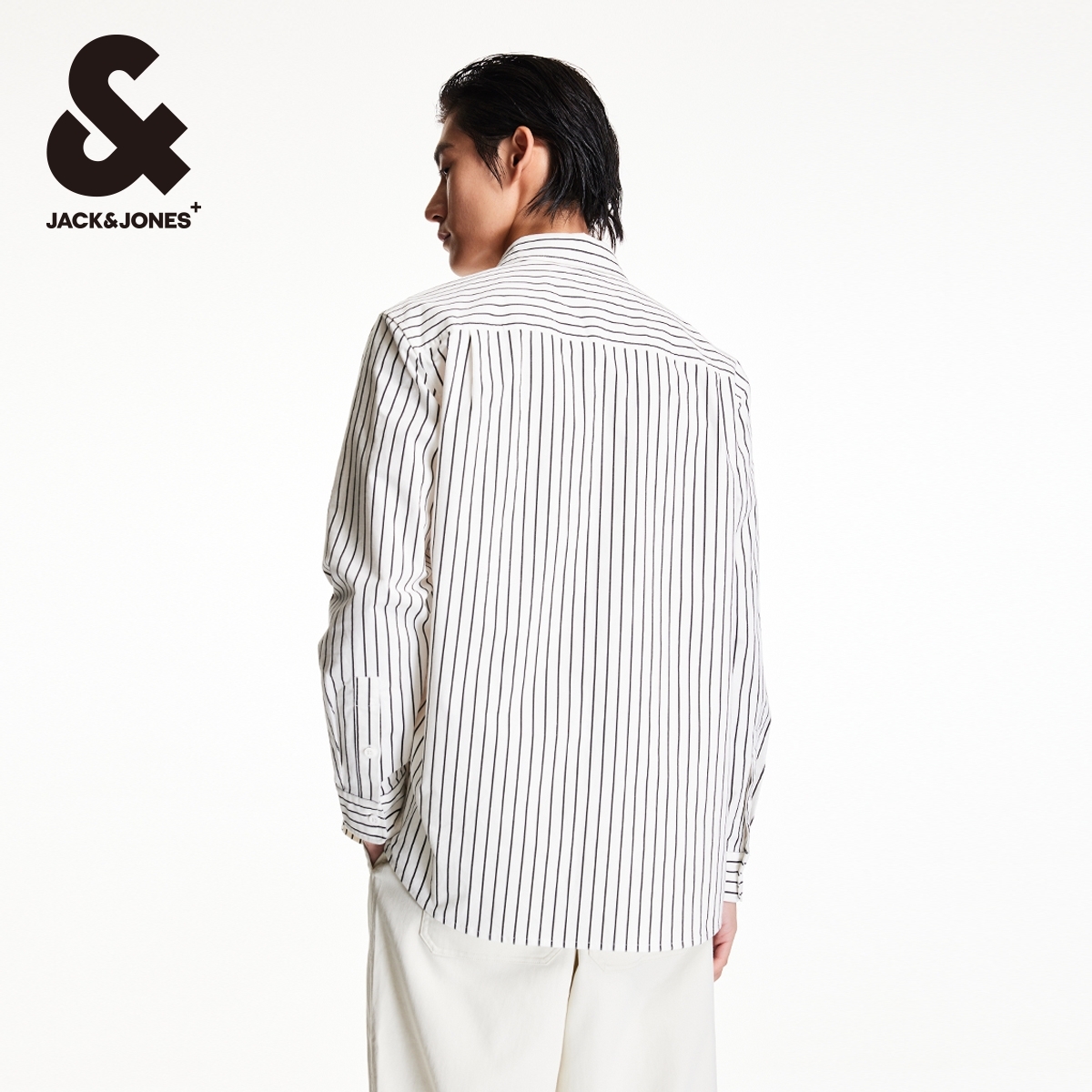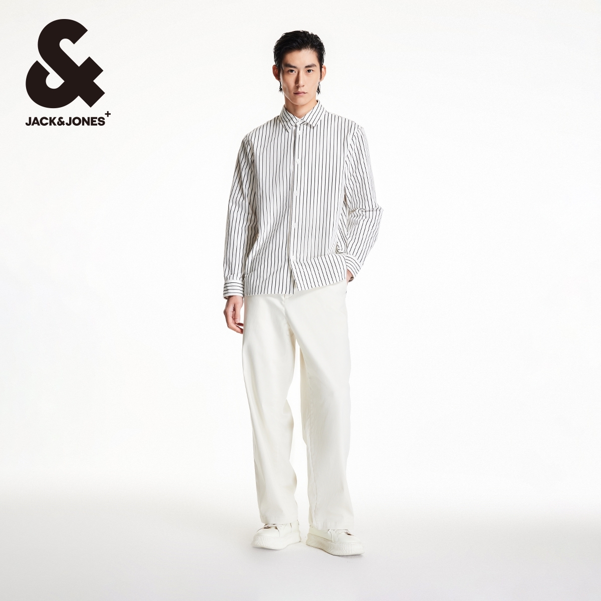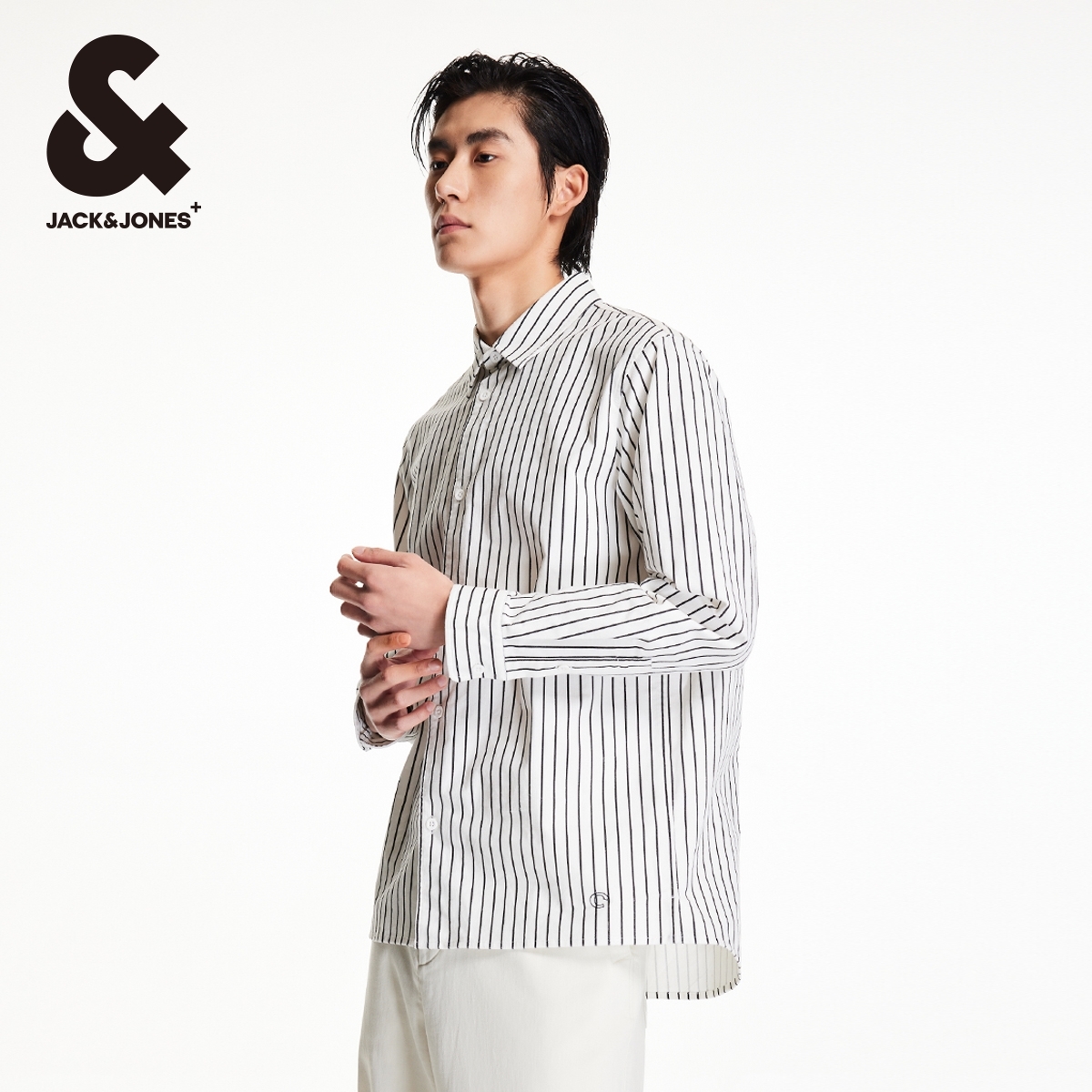 杰克琼斯冬季新款时尚基础衣身条纹舒适面料尖领衬衫长袖男款男装