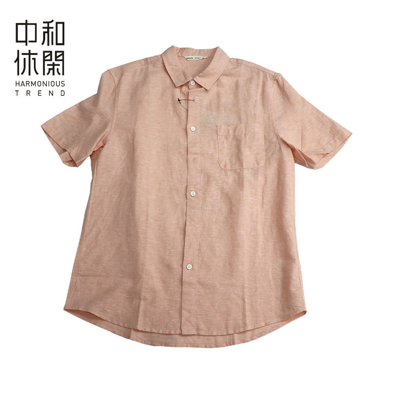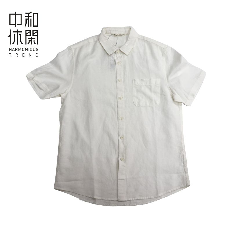 中和休闲夏季薄款棉麻短袖衬衫男休闲纯色宽松半袖潮流方领衬衣