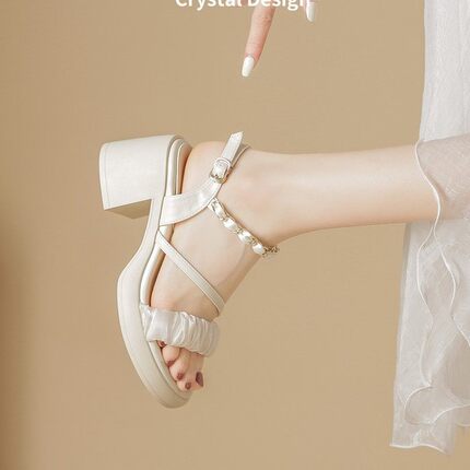 法式高跟鞋粗跟2023年夏季新款百搭配裙仙女风女士厚底凉鞋女中
