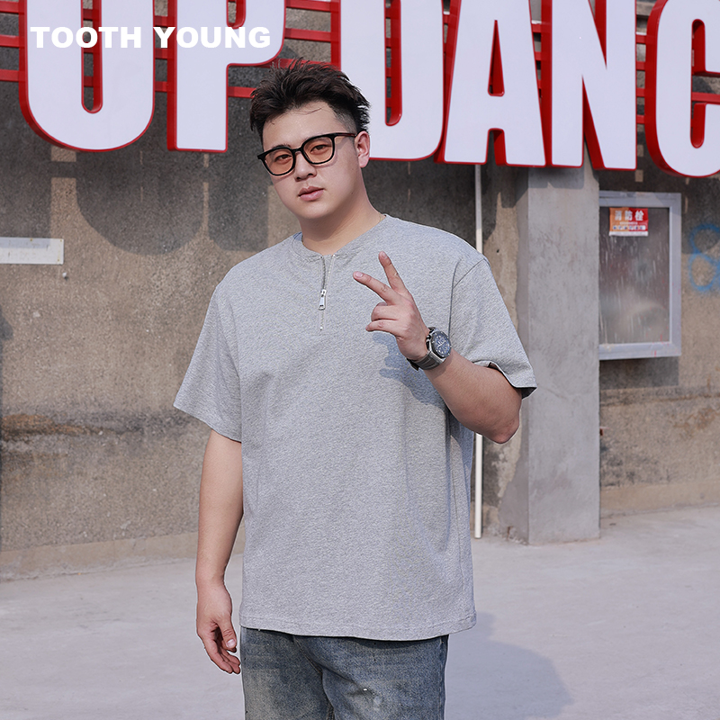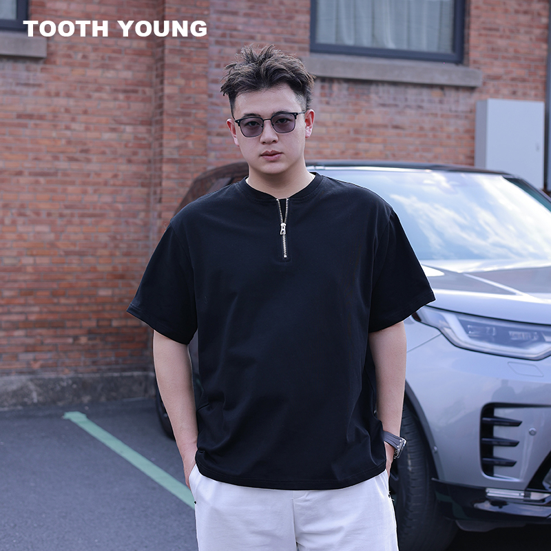 郑一爱穿搭 【拉链T恤】纯色圆领大码夏季百搭男士休闲短袖