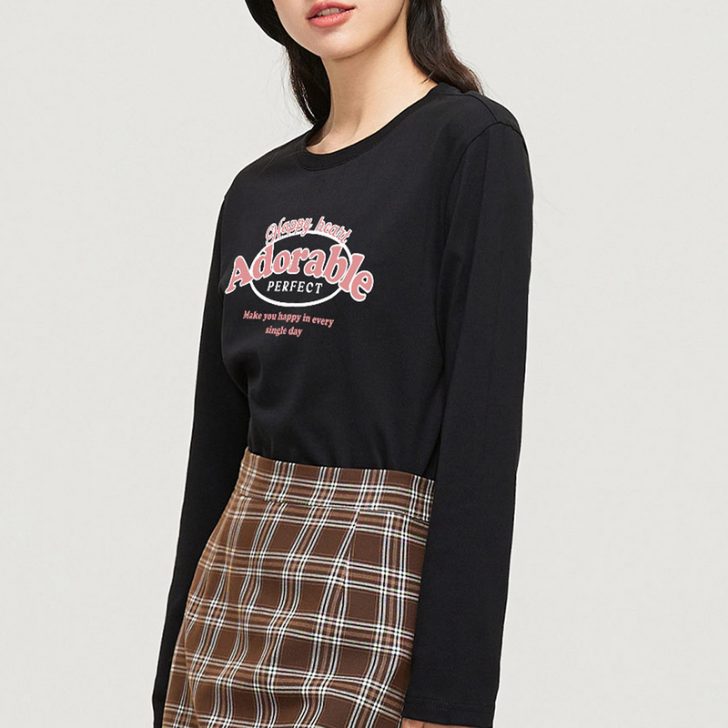 YD真维斯女装春秋简约时尚英文印花潮流百搭休闲长袖T恤洋气上衣
