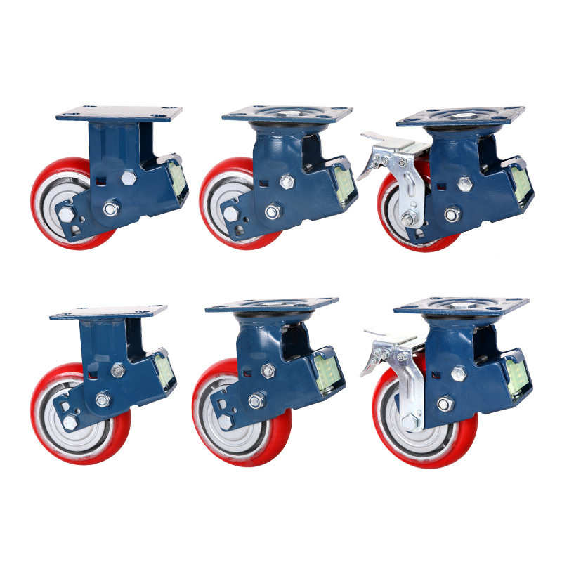 重型4568寸双弹簧减震PU脚轮 铁芯圆弧聚氨酯万向轮子带减震胶块
