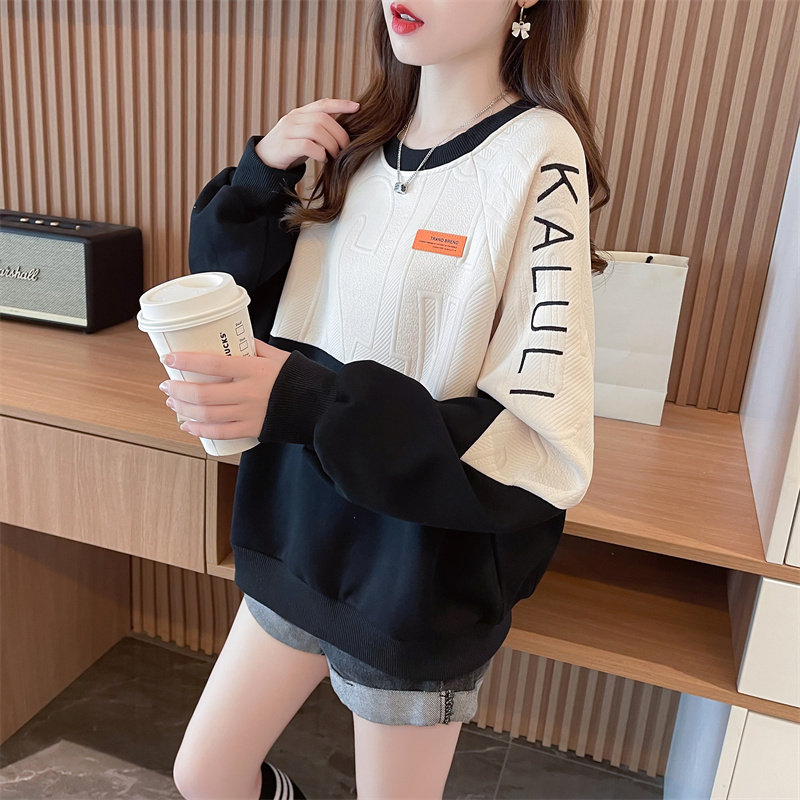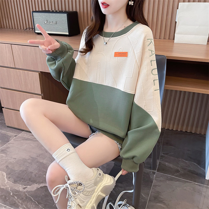 拼色卫衣女2023新款秋冬韩版宽松加绒加厚小个子百搭学生上衣外套