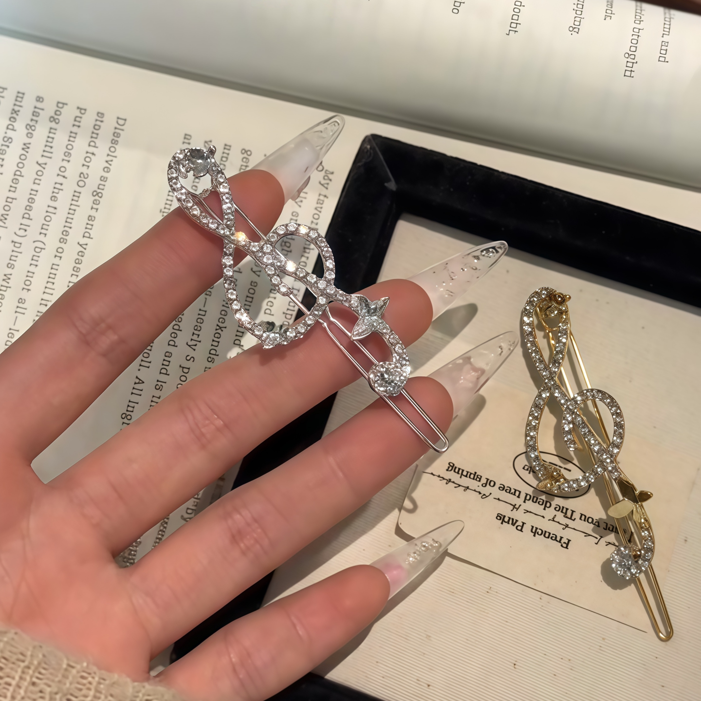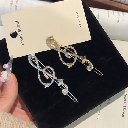 银色音乐符号水钻发夹女新款小众设计音符侧边刘海夹碎发夹子头饰