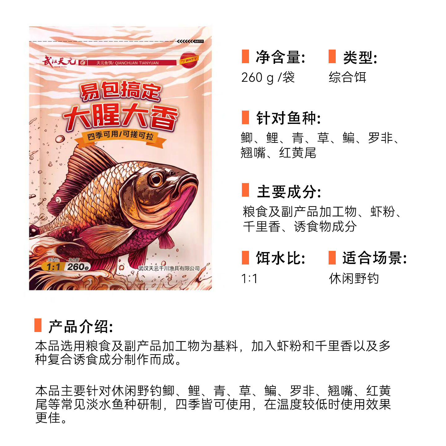 天元邓刚易包搞定大腥大香鱼饵野钓鲫鱼鲤鱼秋冬季钓鱼综合饵料