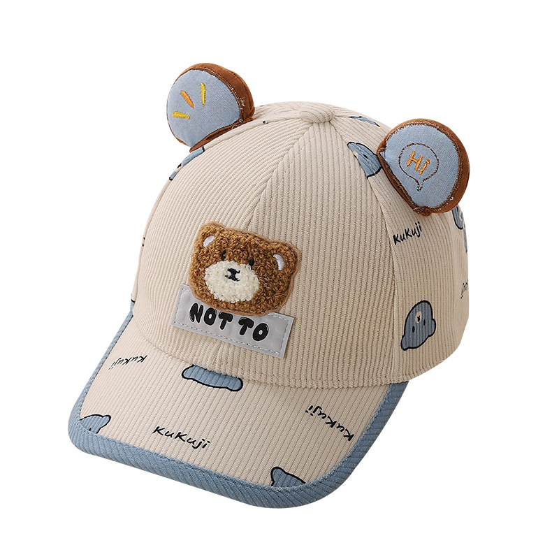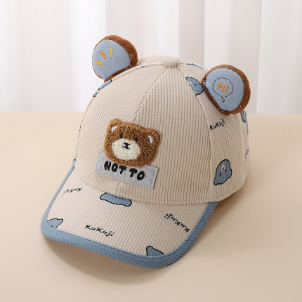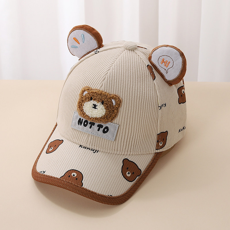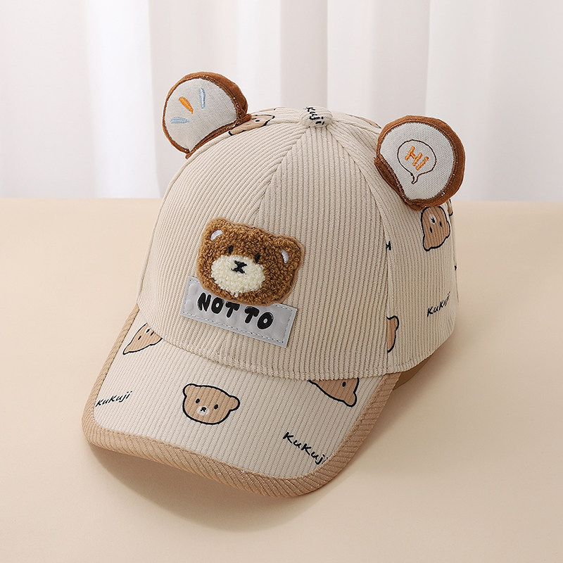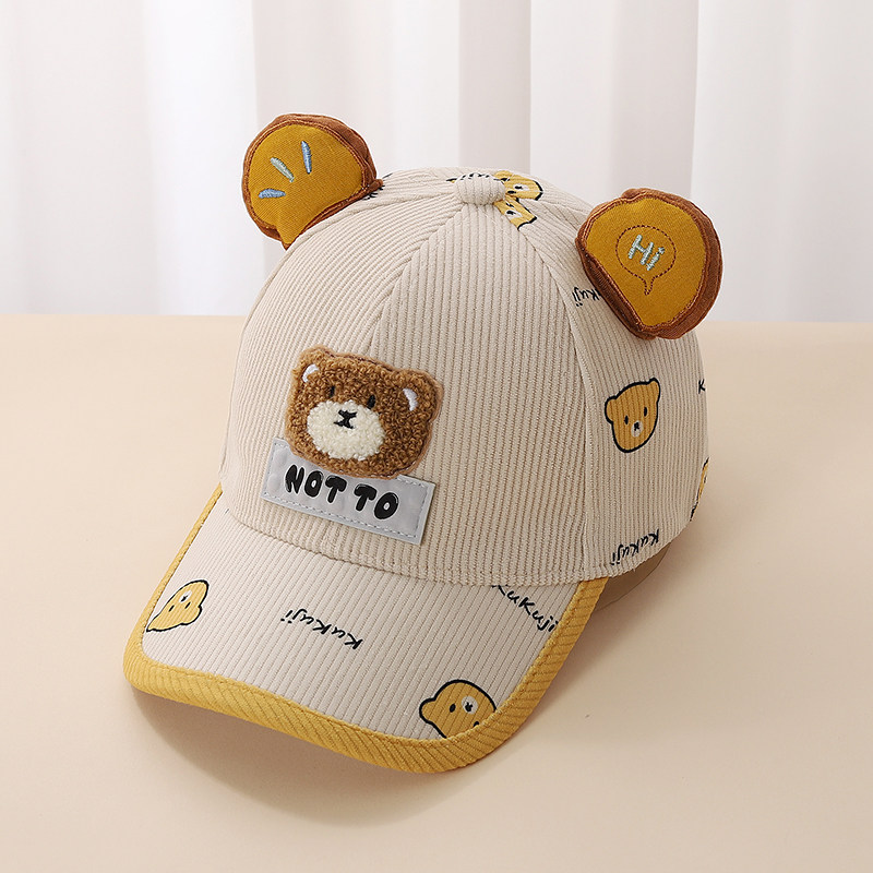 儿童帽子春秋小熊棒球帽灯芯绒男女童鸭舌帽秋冬保暖宝宝帽子萌