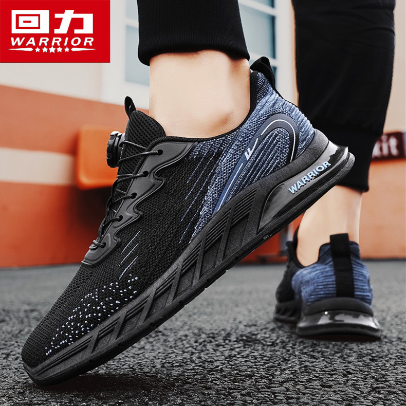回力男鞋夏季透气网面旋钮休闲运动鞋旅游跑步轻便增高黑色老爹鞋