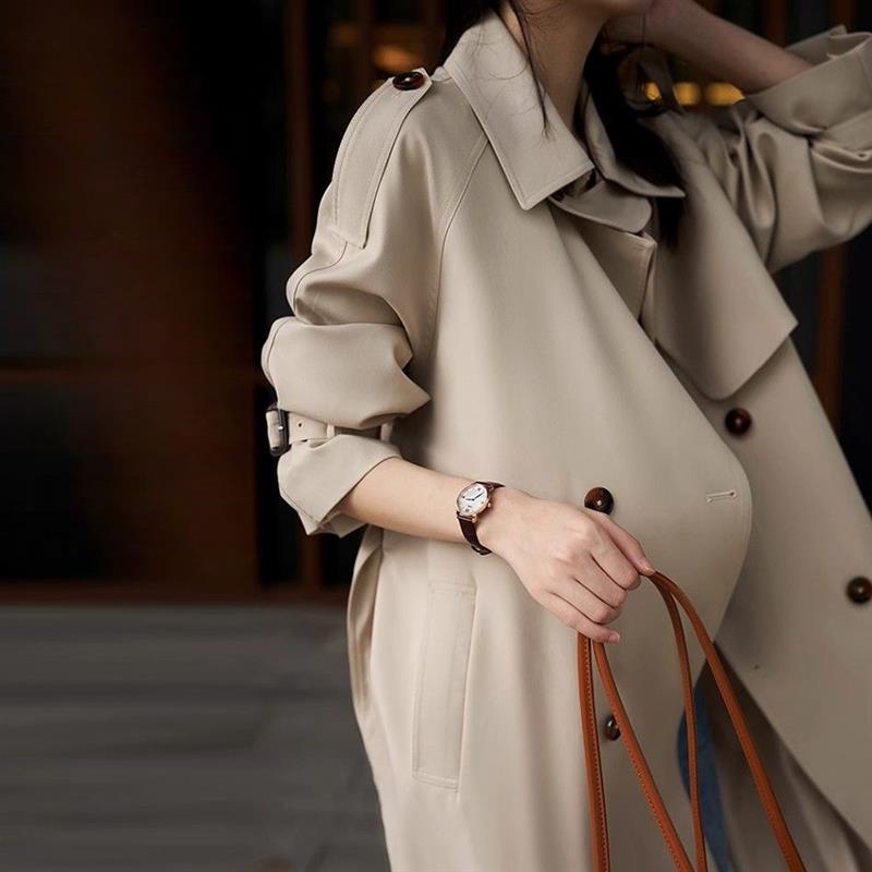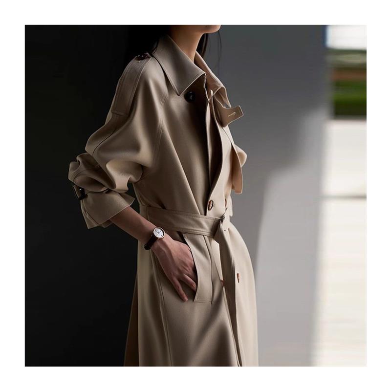 2025春秋中长款过膝质感风衣女赫本风小个子慵懒西装外套潮