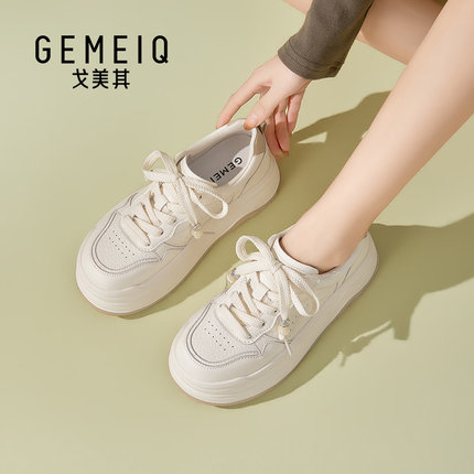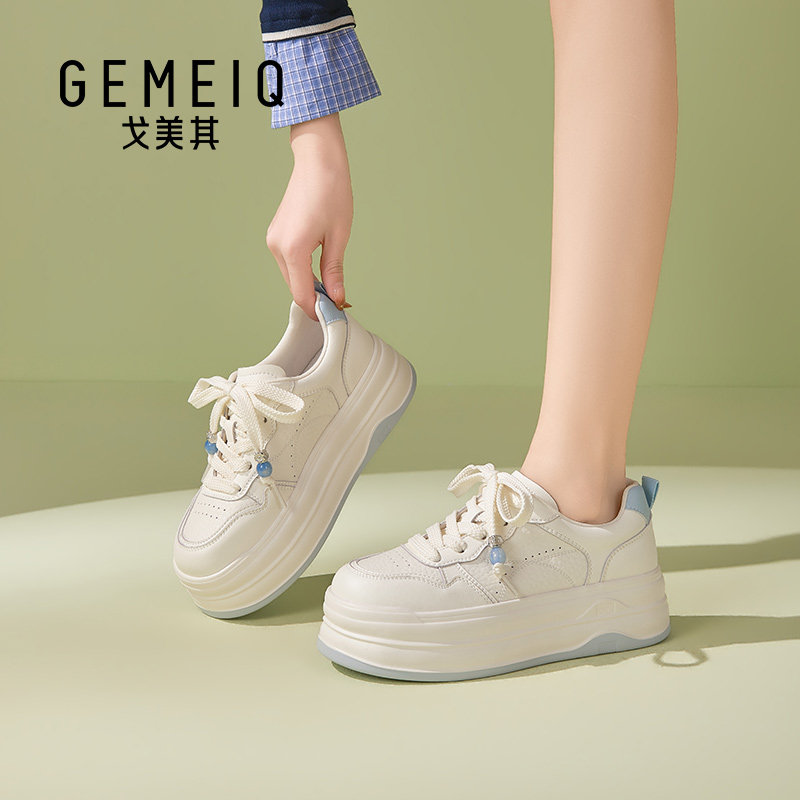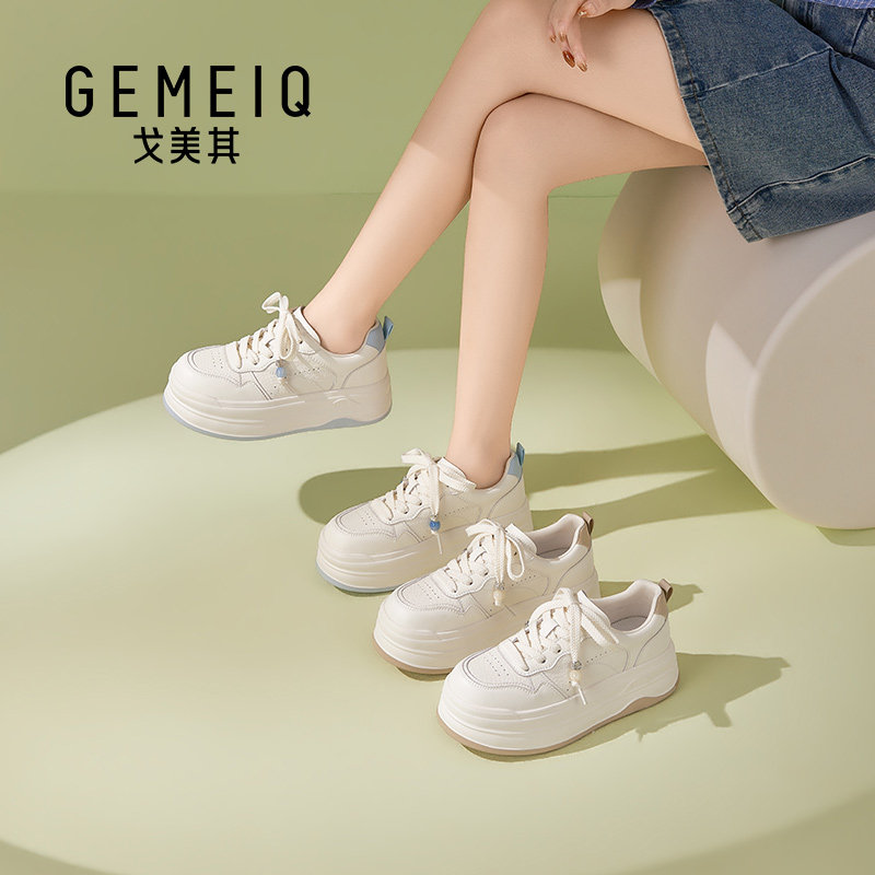 戈美其厚底小白鞋女商场同款百搭休闲板鞋增高舒适系带深口运动鞋