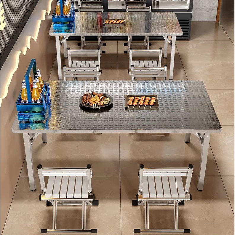 简易不锈钢折叠桌家用长方形便携式户外长条桌子夜市摆摊烧烤餐桌