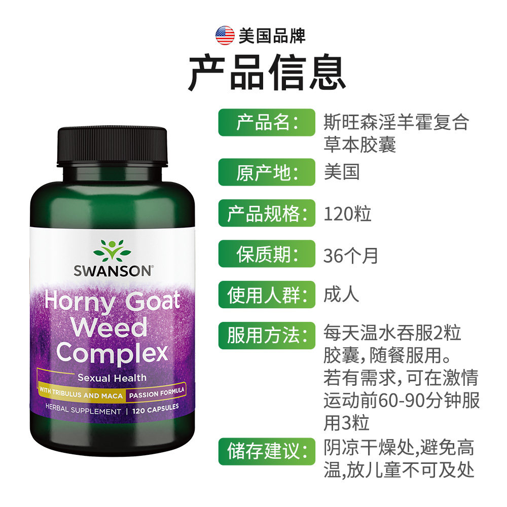 【自营】Swanson斯旺森淫羊藿玛卡刺蒺藜胶囊 促雄性激素睾酮素