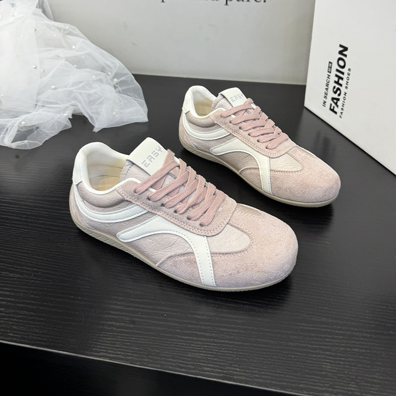 2025新款拼色德训鞋女白色系带休闲运动鞋百搭内增高单鞋女1457