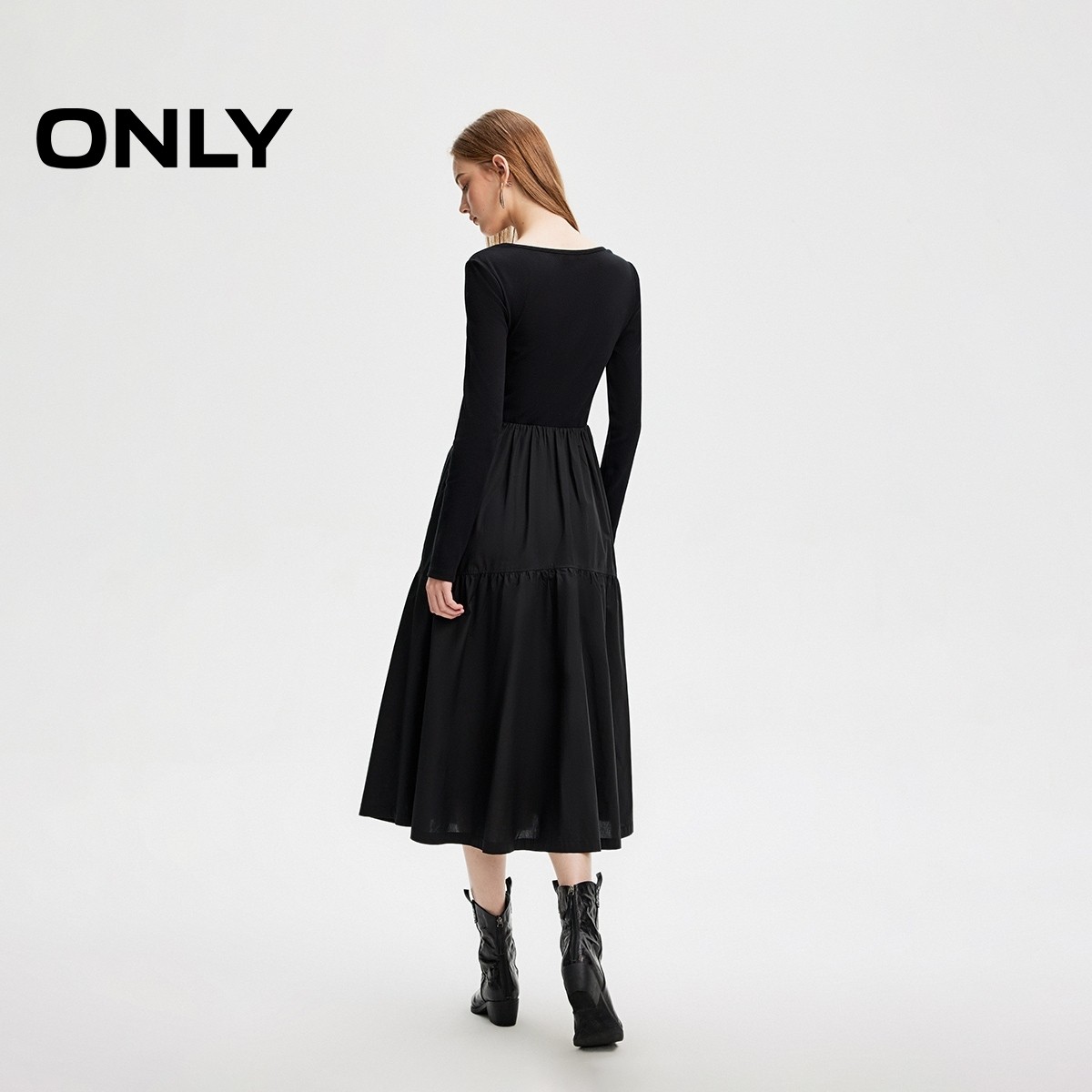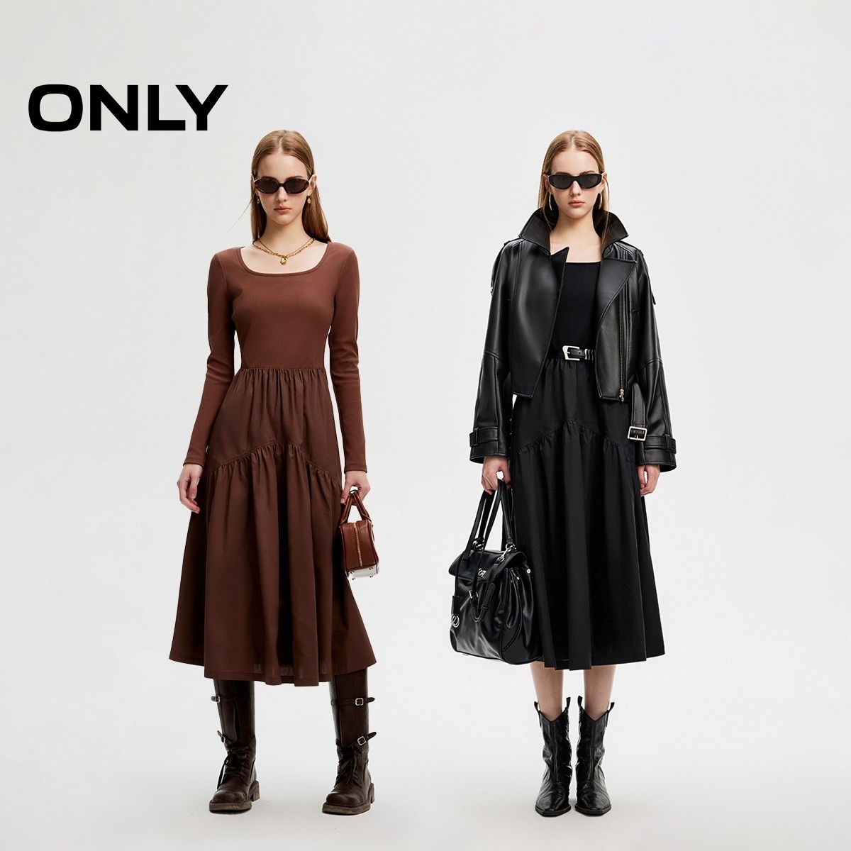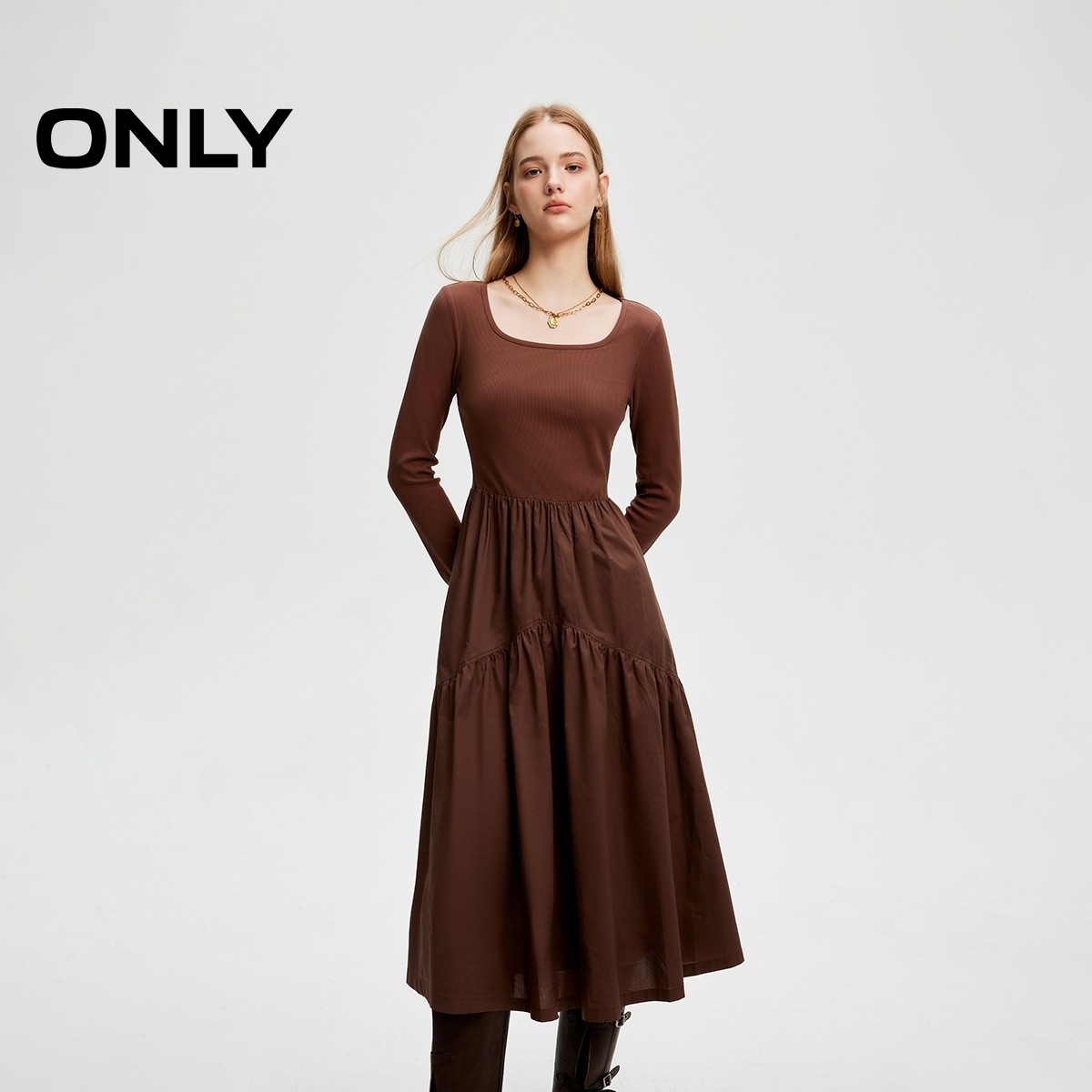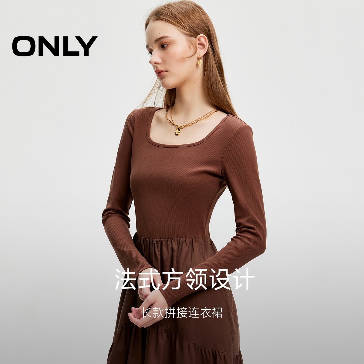 【ONLY奥莱】秋冬通勤方领长袖针织拼接长裙连衣裙女
