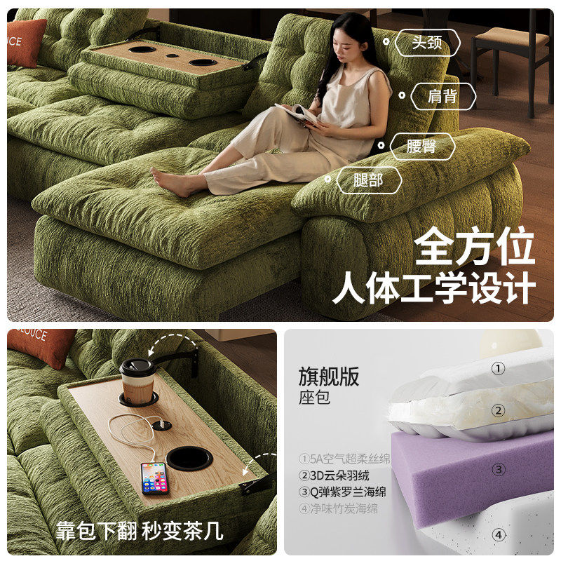 法式复古雪尼尔绒布艺电动多功能云朵帆船沙发客厅新款可躺可睡