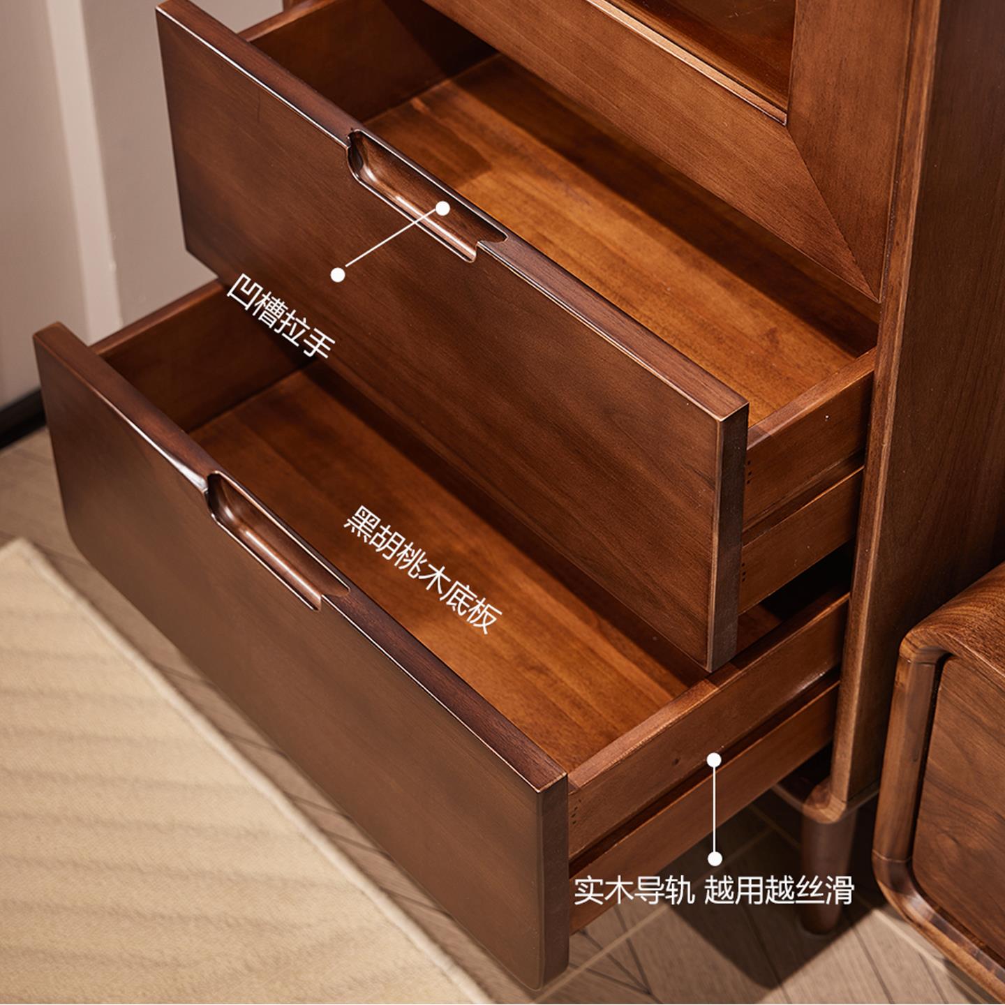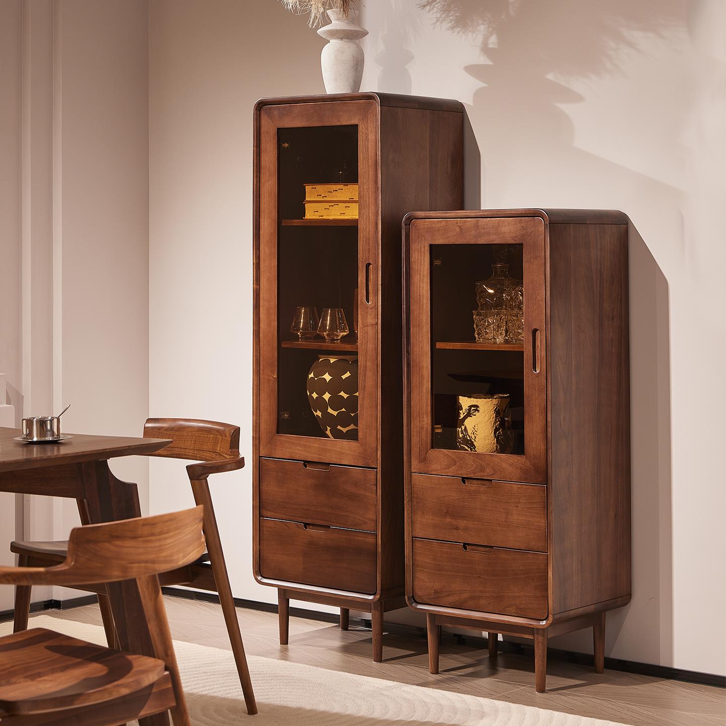 黑胡桃木实木窄边柜客厅多功能收纳展示立柜储物柜酒柜餐边柜书柜