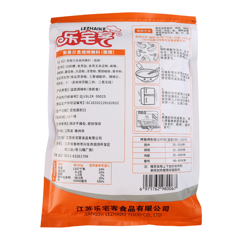 乐宅客新奥尔良烤翅腌料微辣商用烤翅鸡腿炸鸡腌料连锁店烧烤调料