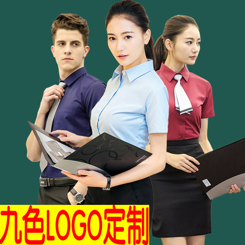 印字男女工作服衬衫定制绣logo短袖夏房地产销售楼部工装职业衬衣