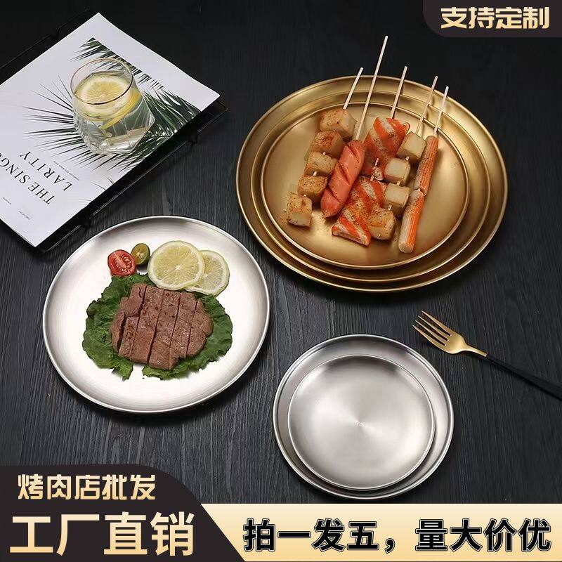 304不锈钢圆盘特厚盘子甜品托盘金色水果盘家用加厚圆形商用平盘