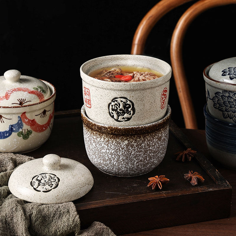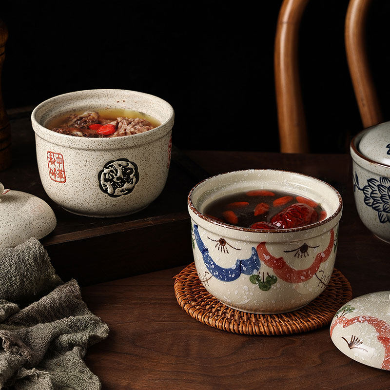 日式复古家用陶瓷隔水炖汤盅粗陶汤罐瓦罐陶罐小炖罐蒸碗罐盅炖盅