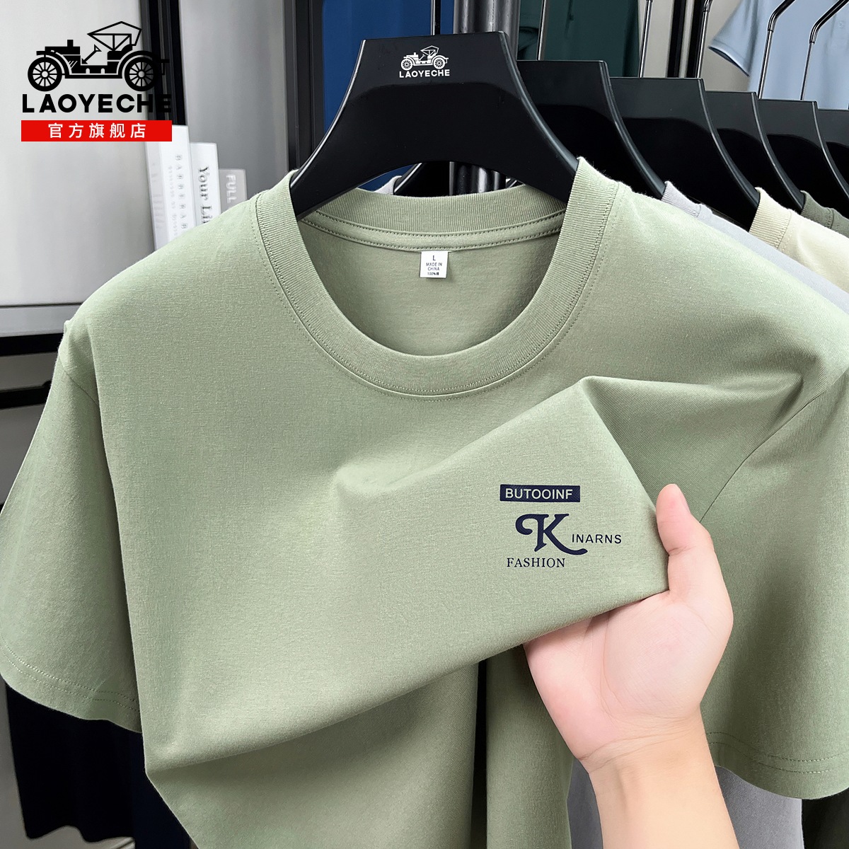 老爷车100%纯棉短袖t恤男士2025年夏季薄款休闲圆领半袖体恤衫男