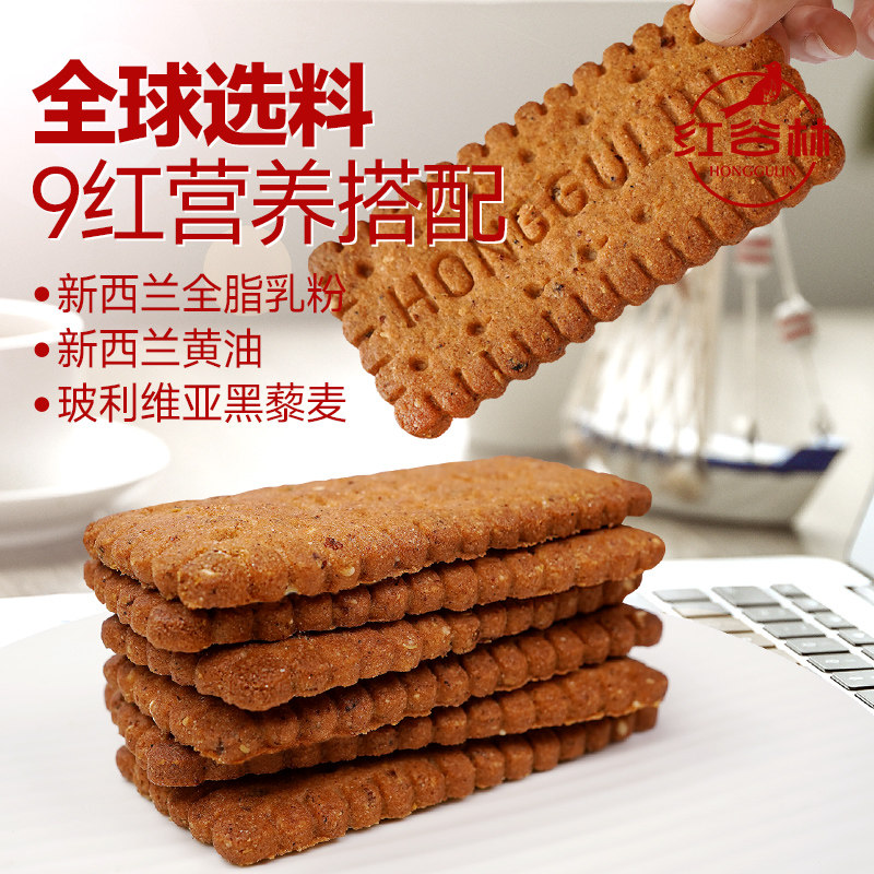 红谷林无蔗糖9红藜麦谷物饼干208g高膳食纤维早餐粗粮休闲零食品
