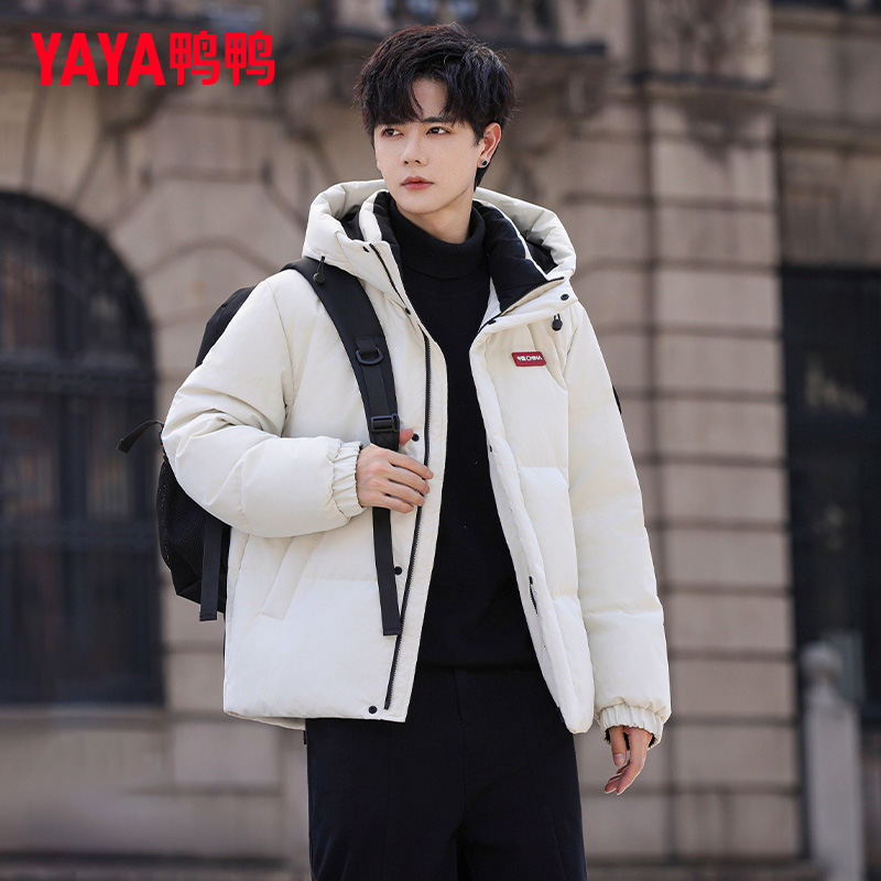 鸭鸭短款连帽羽绒服男2025冬季新款三防蓄热防静电加厚保暖外套HY