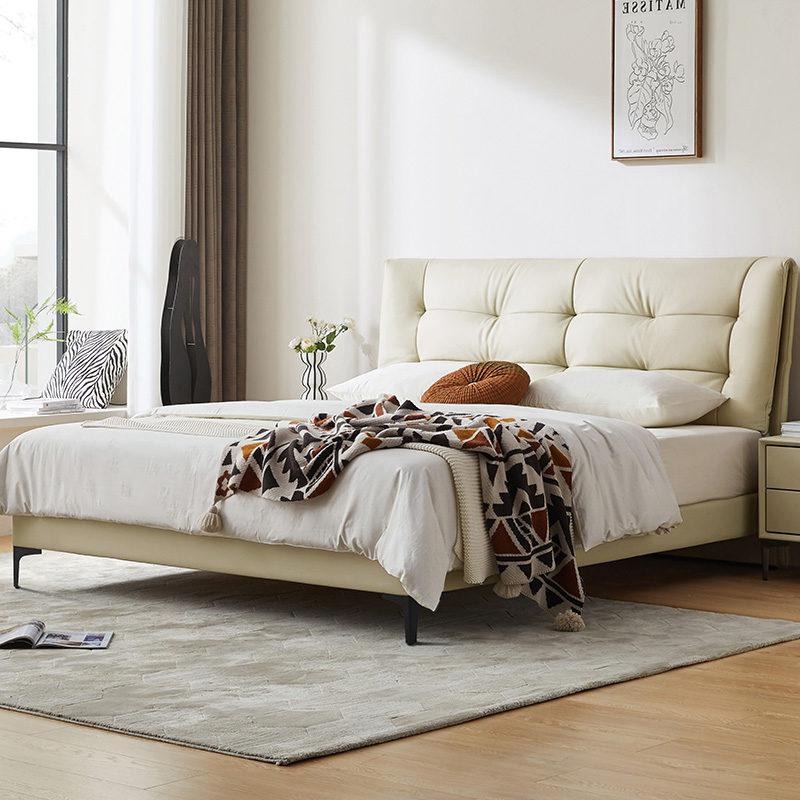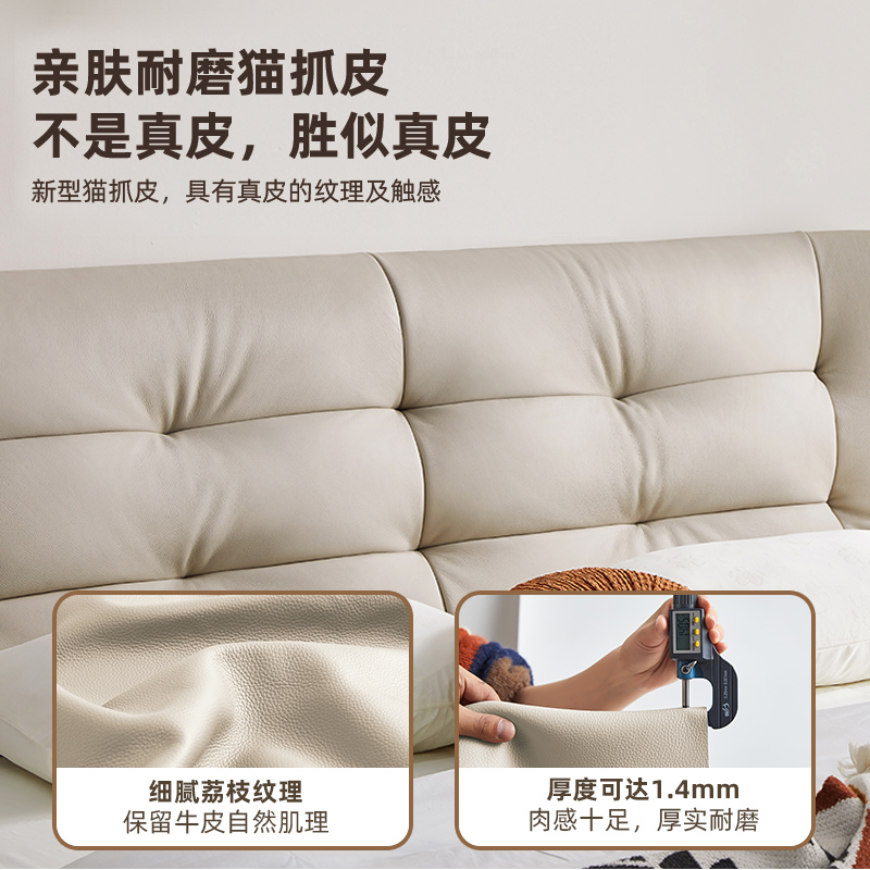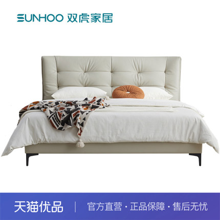 双虎奶油风云朵泡芙床简约现代猫抓布软包双人床主卧布艺床23658