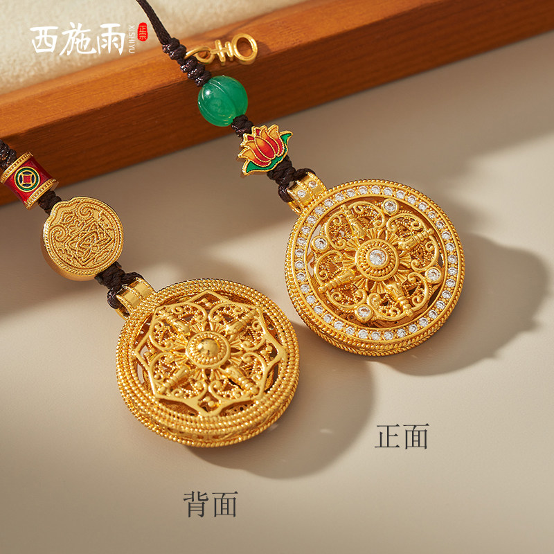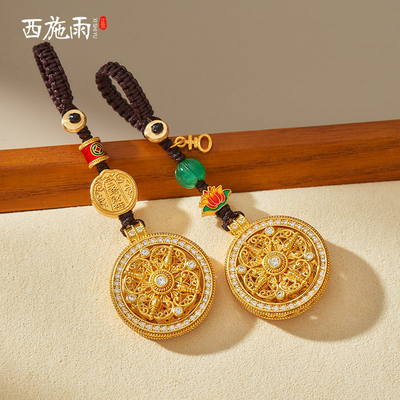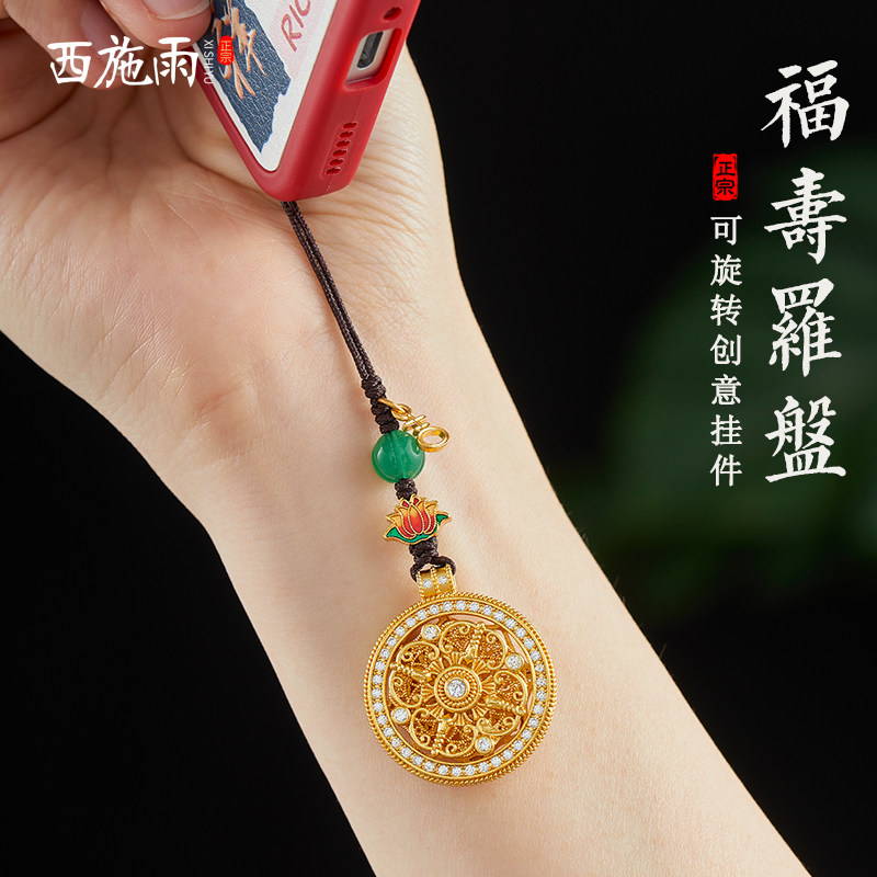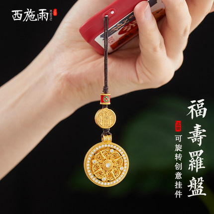 沙金黄铜福寿罗盘手机链挂饰吊坠文创车钥匙扣挂件送女友节日礼物