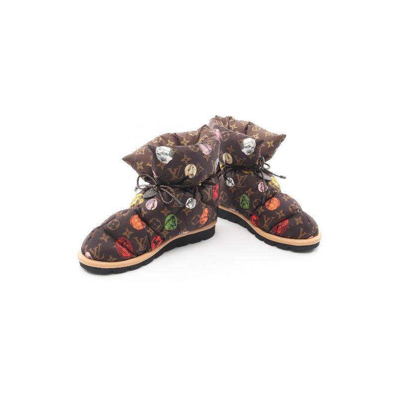 中古LV路易威登女A级95新boots靴尼龙鞋棕色
