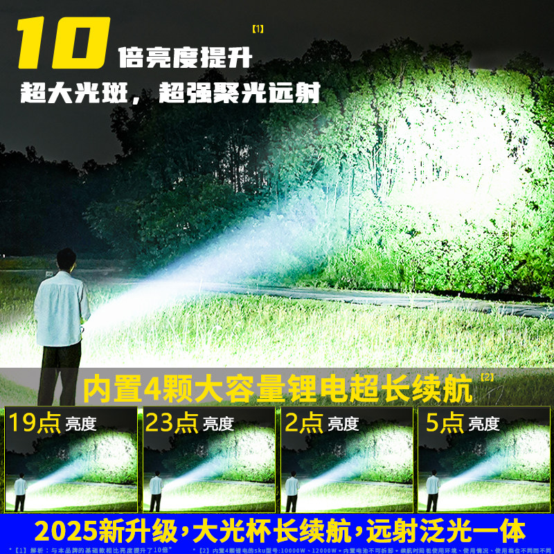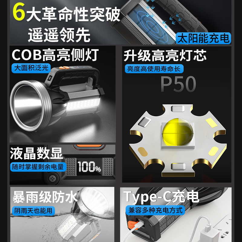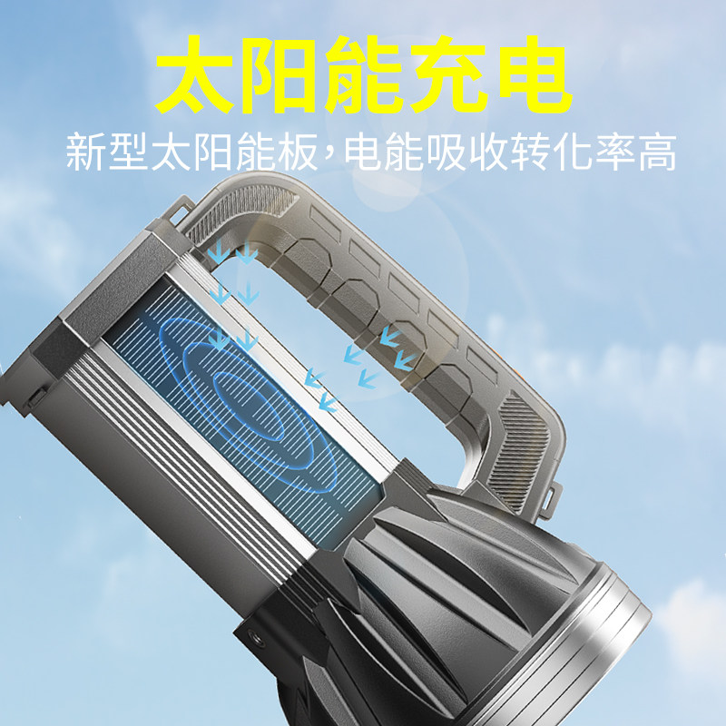 强光探照灯户外超亮远射太阳能充电手电筒大功率手提灯超长续航