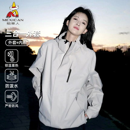 稻草人冲锋衣女款2025新款秋冬季防风三合一可拆卸户外秋冬外套男
