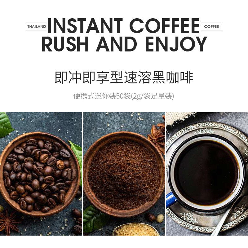 100条泰国进口高崇速溶美式黑咖啡无清奶无苦糖咖啡粉纯咖啡
