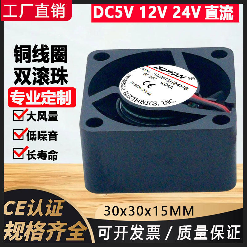 静音3015 24V 30*30*15MM主板机箱散热风扇高转速液压滚珠轴承