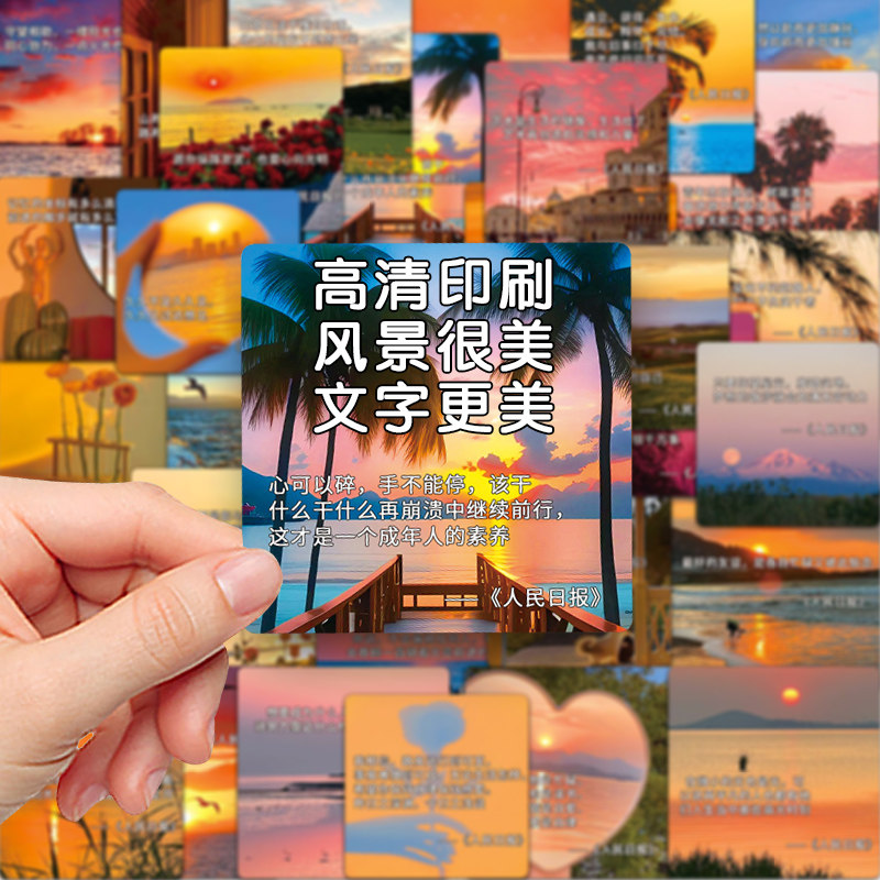 人民日报金句贴纸励志文案文字经典语录装饰防水diy贴画ins风景图