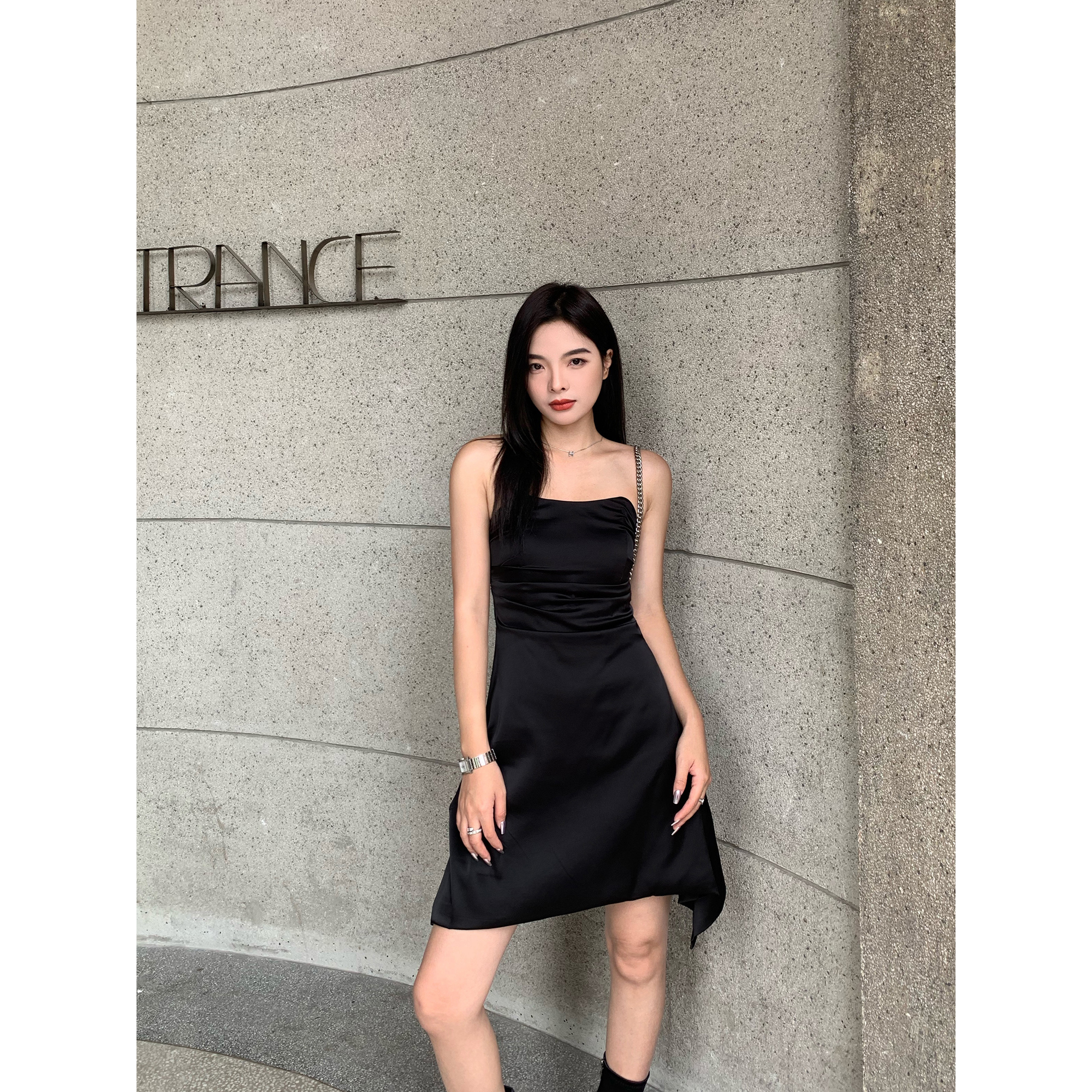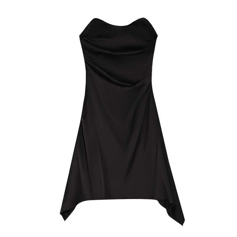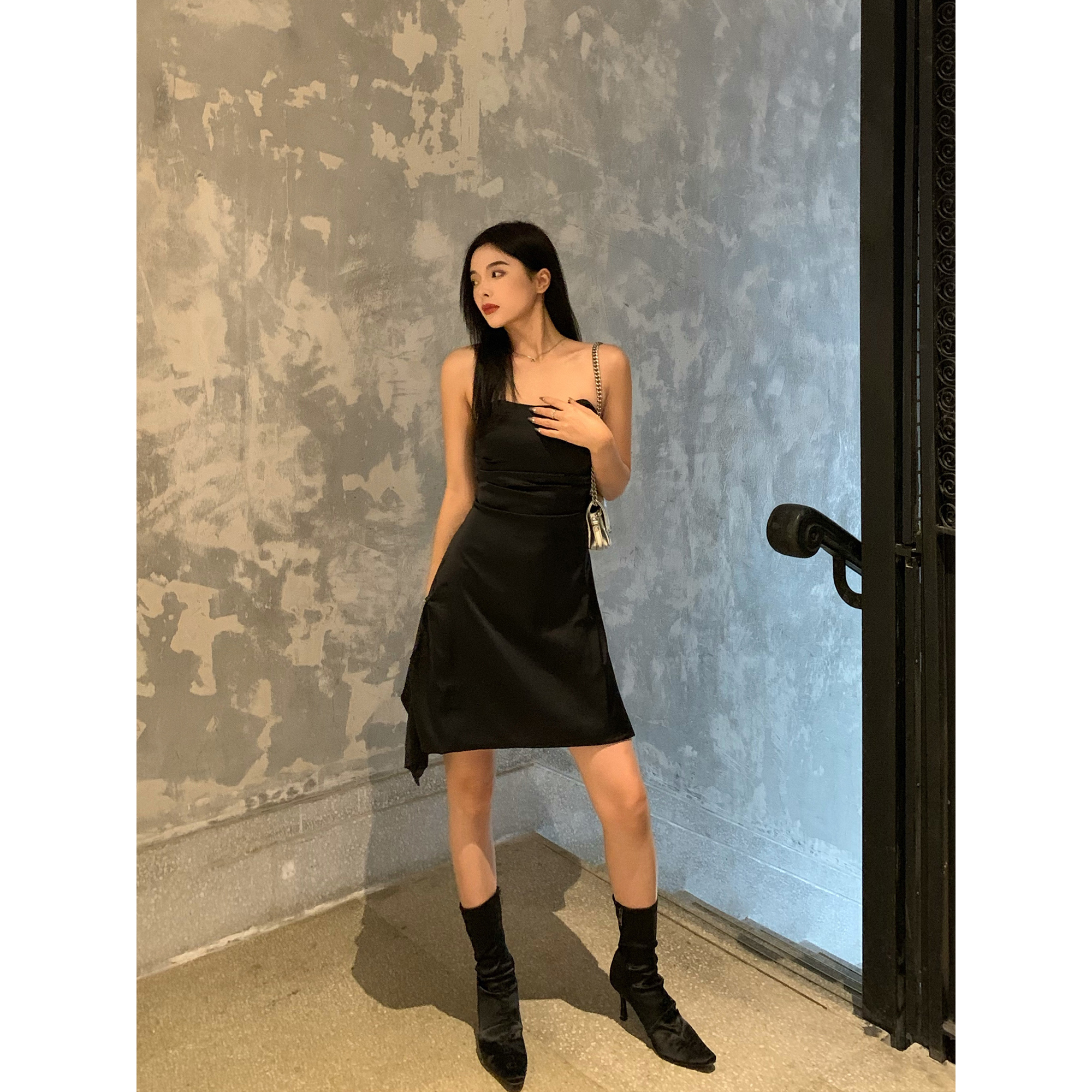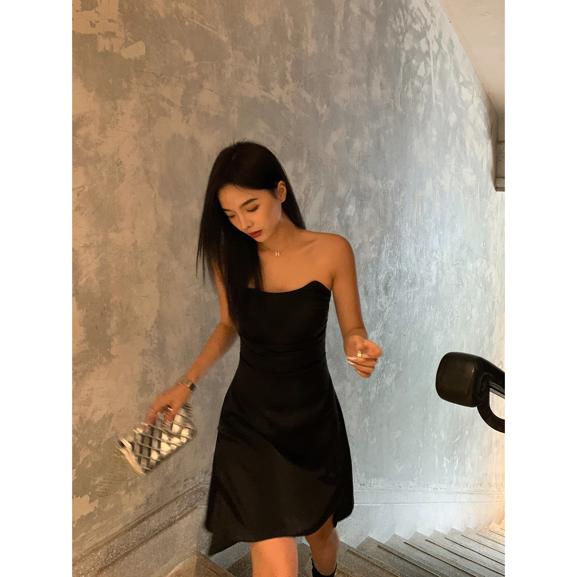 辰米范 黑色抹胸连衣裙女设计感收腰显瘦裙气质修身短款鱼尾裙