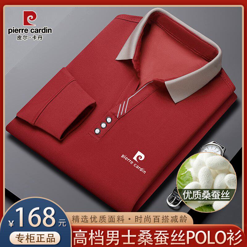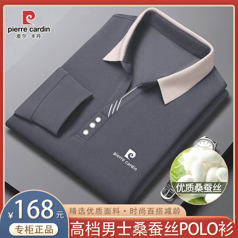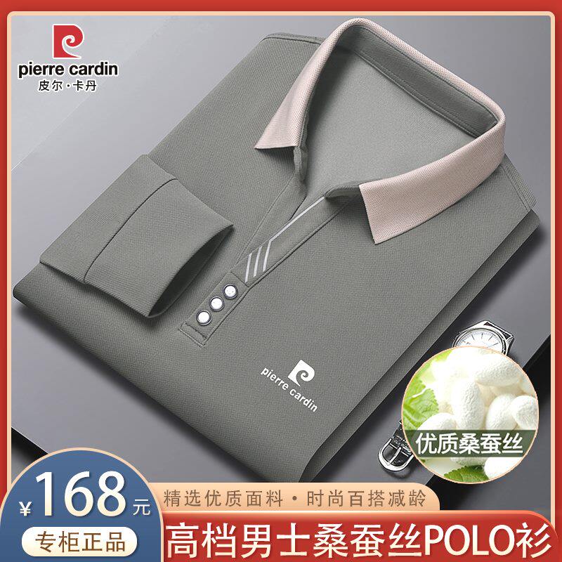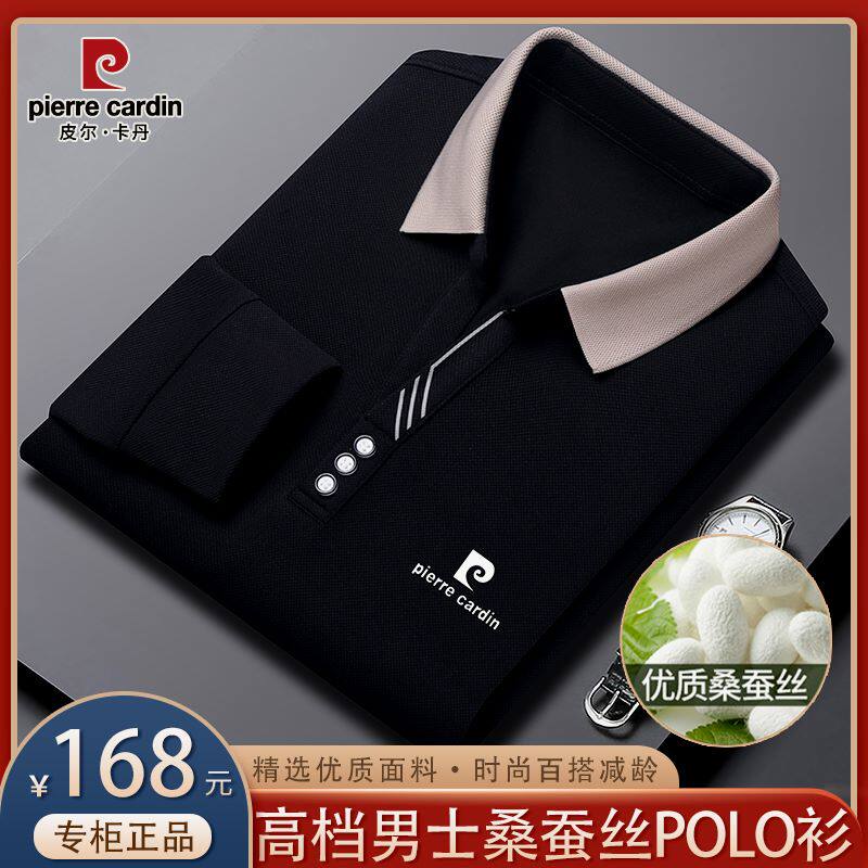 皮尔卡丹秋季新款高档男士桑蚕丝长袖Polo衫纯色翻领真丝薄款T恤