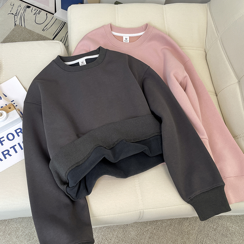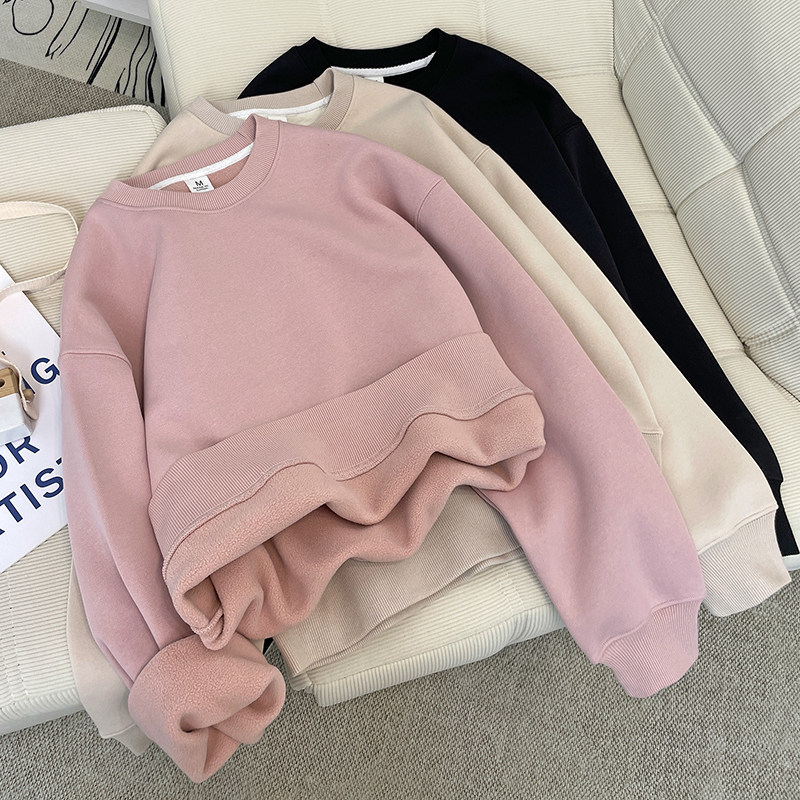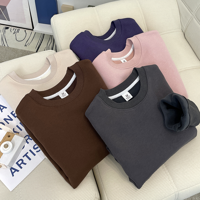 加绒宽松摇粒绒韩版纯色圆领卫衣