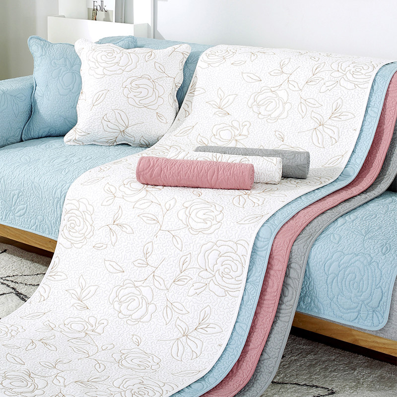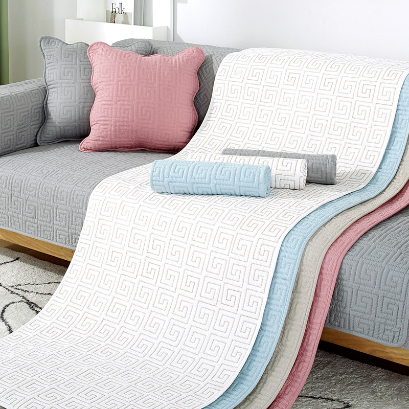 四季通用全棉米白沙发垫冬季纯棉布艺坐垫简约现代沙发巾套罩全盖