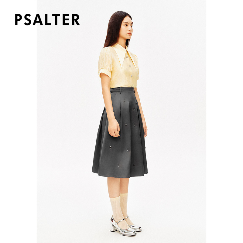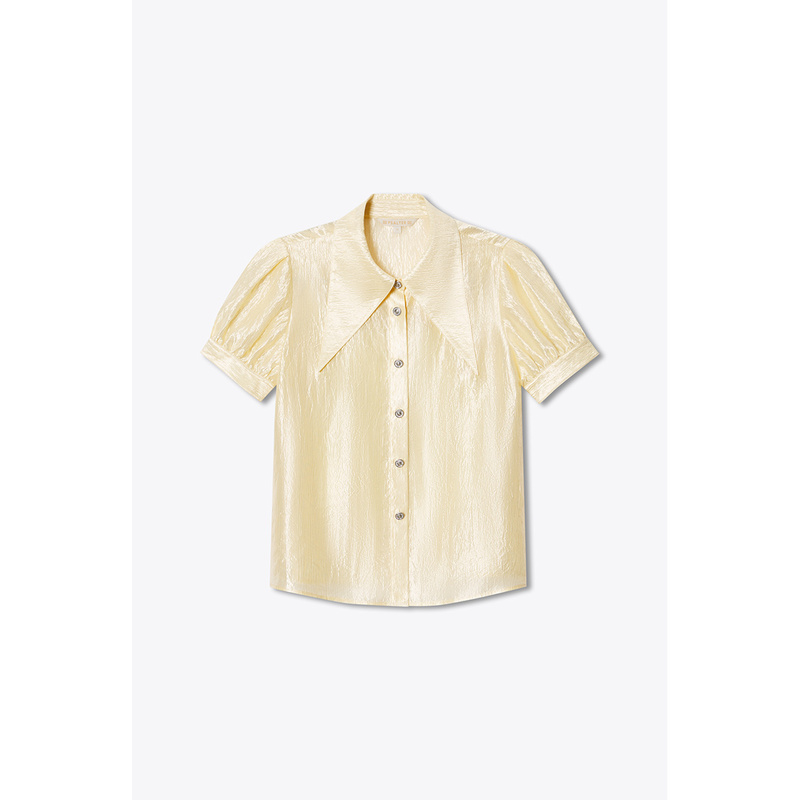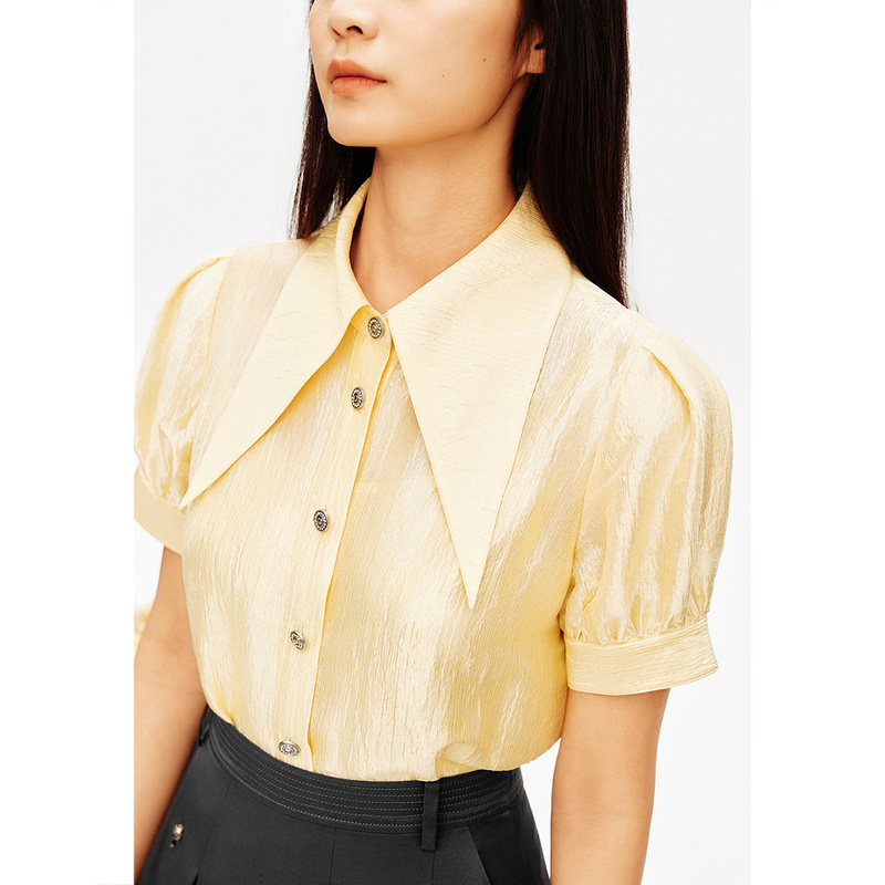 PSALTER诗篇复古尖领泡泡袖光泽感短袖衬衫夏款