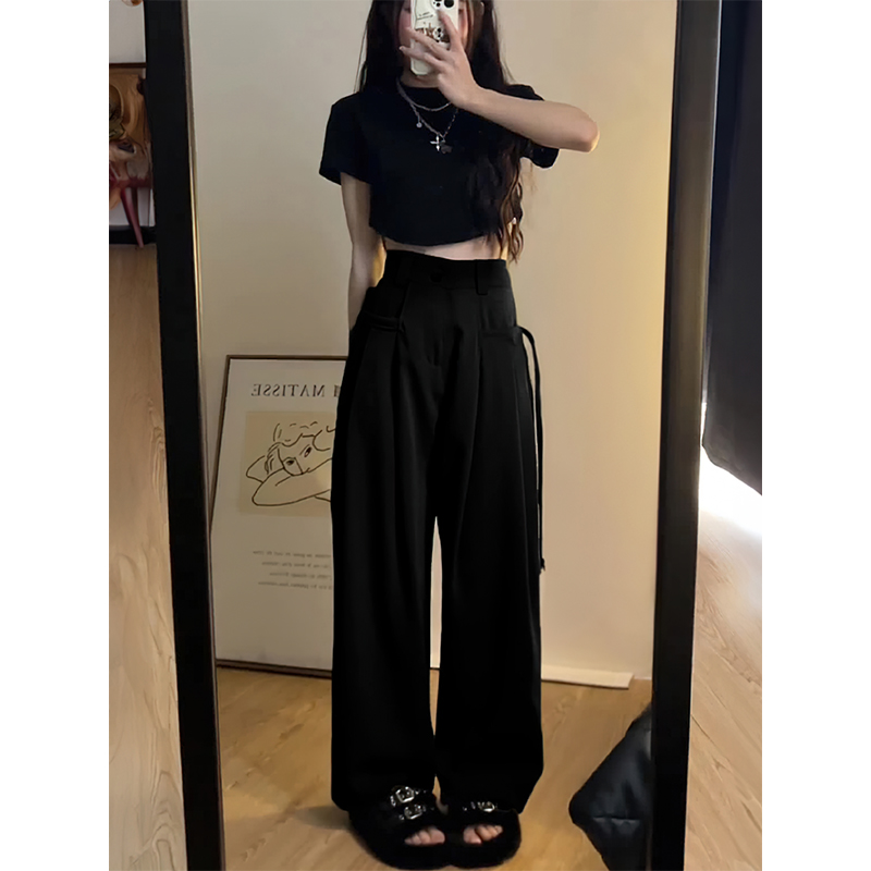 梨型身材工装休闲裤女秋冬新款胖妹妹mm高腰宽松显瘦阔腿西装长裤