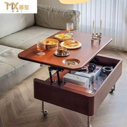 中古风折叠实木茶几客厅小桌子升降可移动小茶几小户型多功能家用