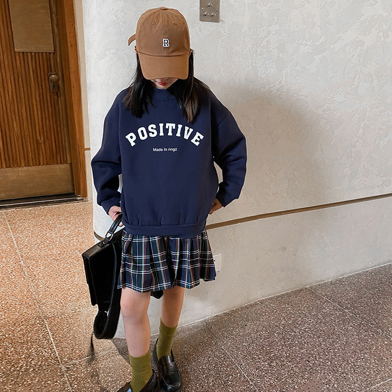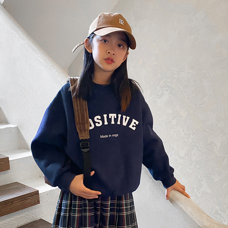 女童秋冬卫衣加绒加厚2022新款女大童冬季洋气宽松保暖套头衫上衣