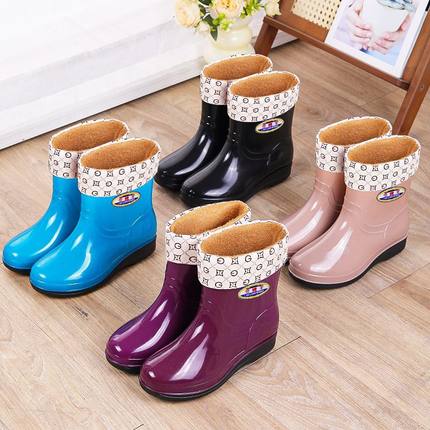 秋冬厚底雨鞋女中筒保暖加绒防滑防水鞋时尚成人雨靴厨房超厚胶鞋