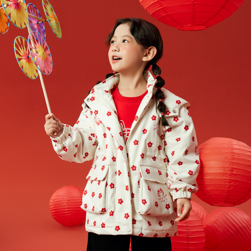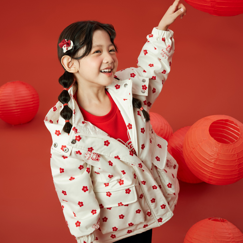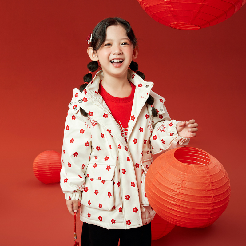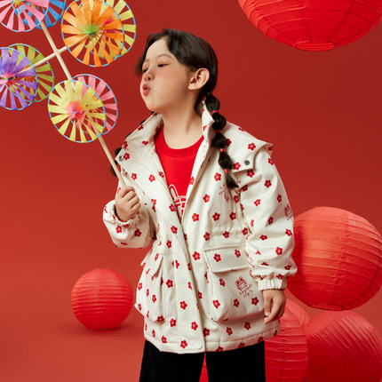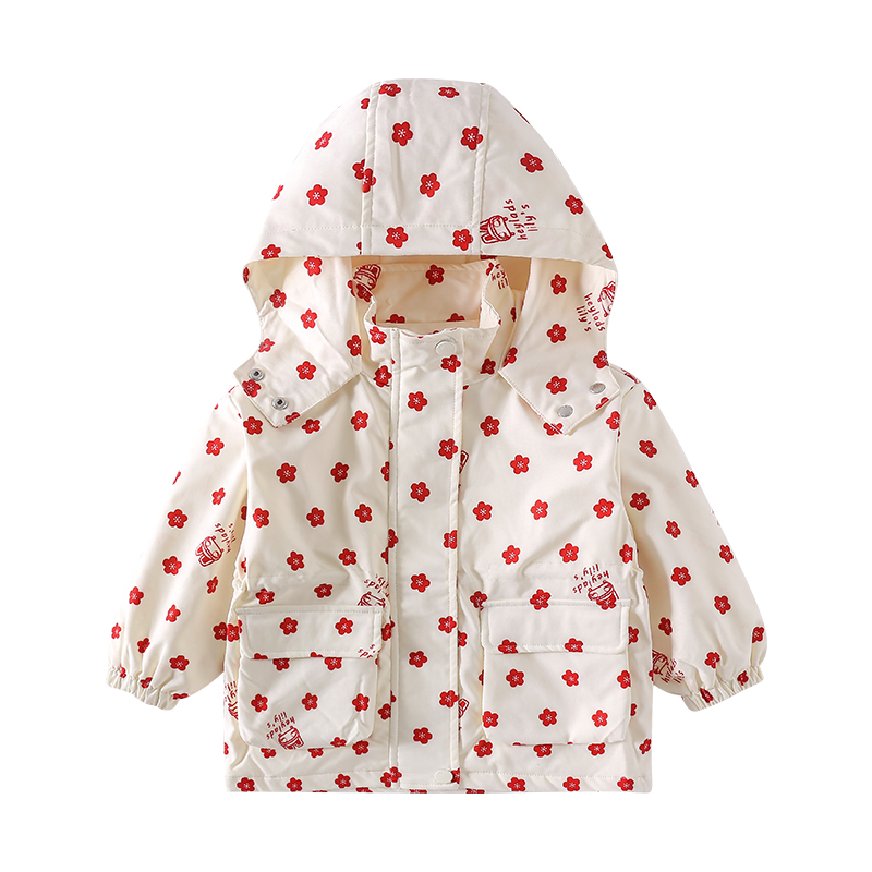 男生女生童装2024春秋款女小童保暖上衣儿童休闲宝宝连帽印花外套