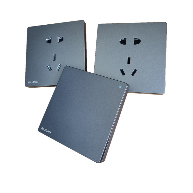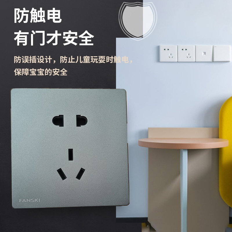 FANSKI菲时特家用灰色墙壁暗装双控开关一开5孔插座带USB五孔插座