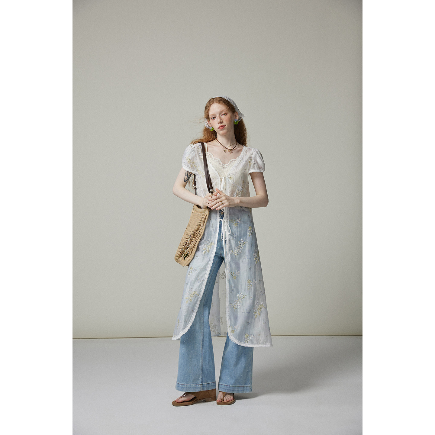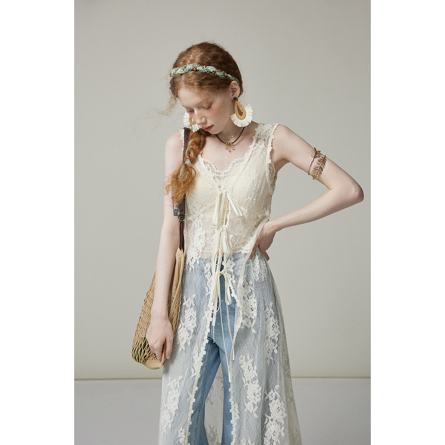 猫酱紫 蕾丝叠穿连衣裙两件套女设计感无袖系带ins风性感长裙