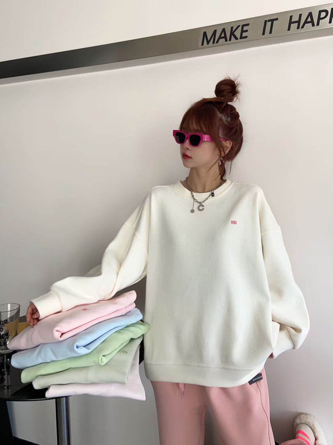 bluetree刺绣字母圆领卫衣女潮ins秋季韩版宽松慵懒风厚无帽上衣