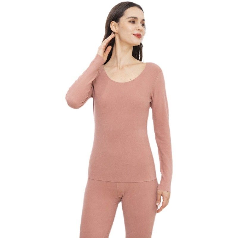 猫人保暖内衣微厚女士德绒莫代尔棉三合一秋冬款圆领秋衣秋裤套装
