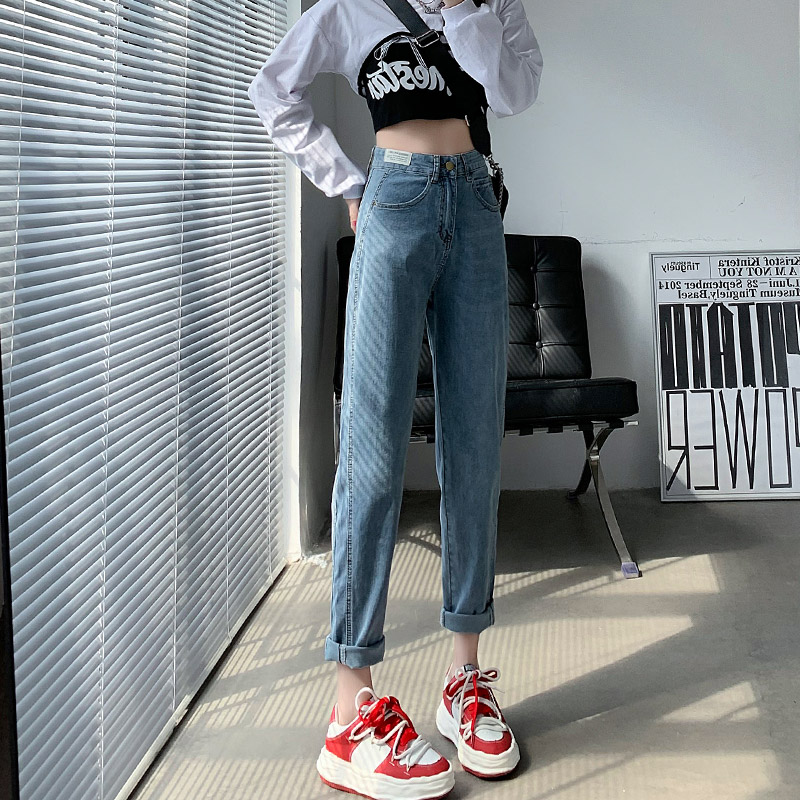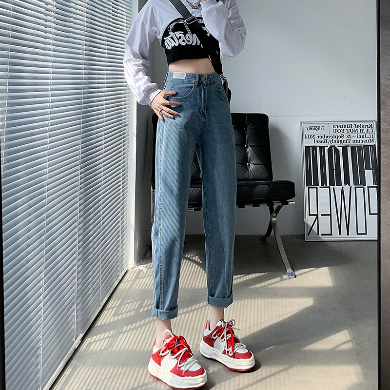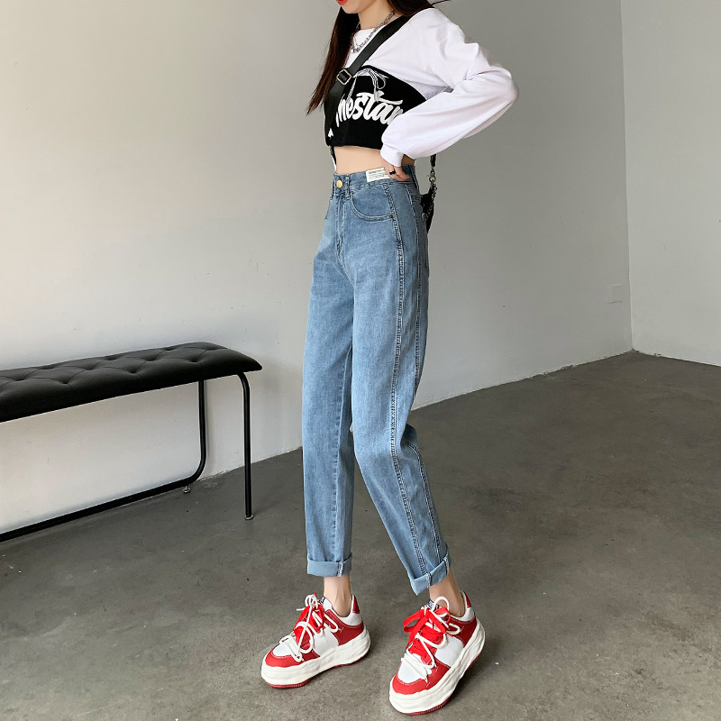 高腰哈伦牛仔裤女秋冬新款大码胖MM宽松显瘦小个子老爹萝卜裤子春